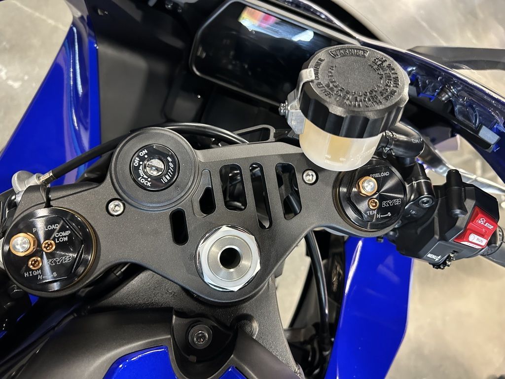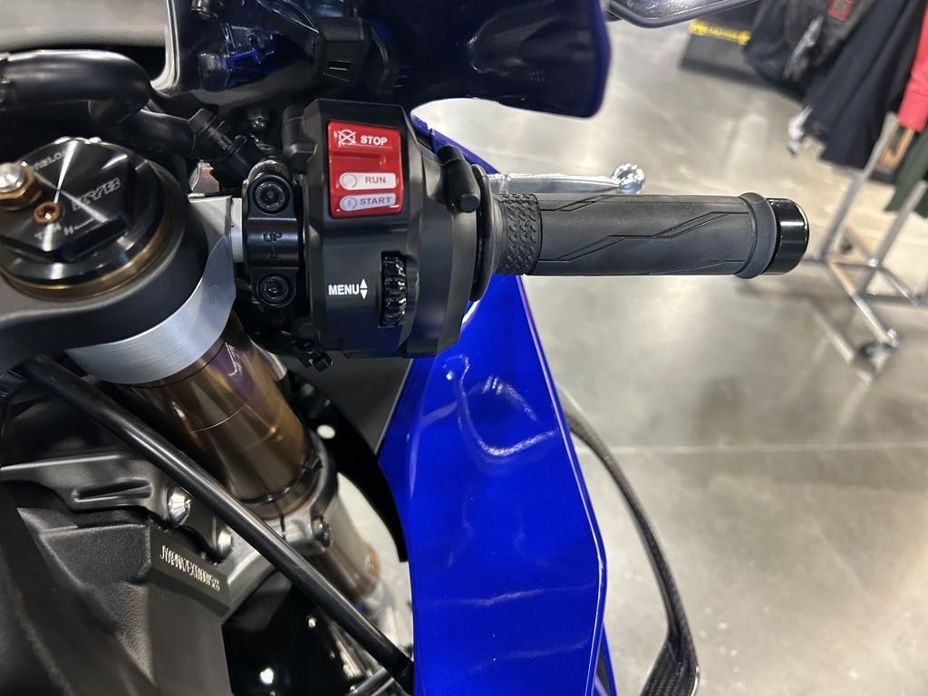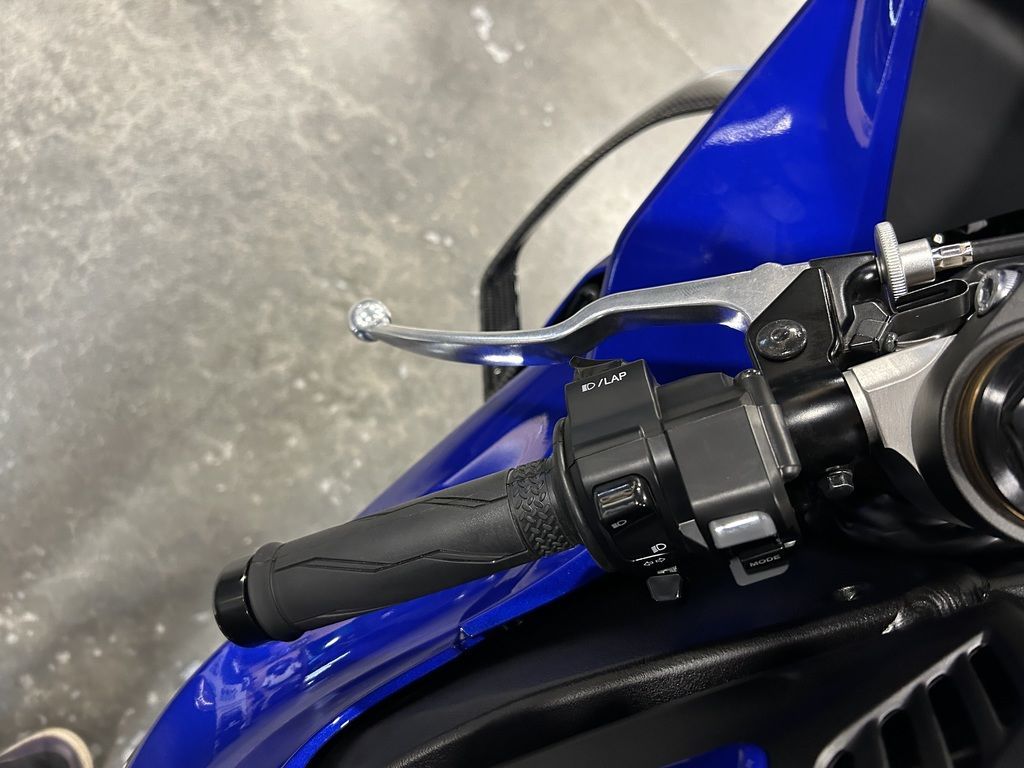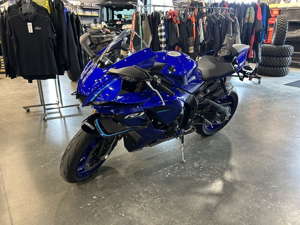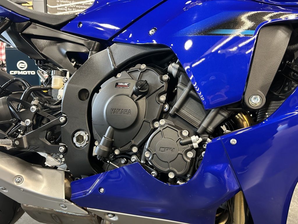 2026 Yamaha YZF-R1SUPERBIKE ICONStacked with cutting-edge technology gleaned directly from MotoGP and Superbike competition, the YZF-R1 features a powerful 998cc crossplane CP4 engine, refined Deltabox frame, MotoGP®-inspired carbon fiber winglets and a comprehensive electronics package for the ultimate in performance and control. Premium Brembo® front brakes and a highly refined KYB® suspension further enhance its track-focused capability. It all comes wrapped in sleek, distinctive R-series styling for an aggressive look to match its advanced performance.Features may include:MotoGP®-Inspired WingletsDeveloped through extensive simulator and on-track testing, MotoGP®-inspired carbon fiber winglets create additional downforce for exceptional chassis stability and added front-end feel when braking or cornering.Premium Brembo® BrakesPremium Brembo® Stylema monobloc front brake calipers are paired with a Brembo® master cylinder to offer outstanding braking power and exceptional feel.High-Spec KYB® Front SuspensionThe exceptional KYB® front fork is designed to offer excellent response, road feel and chassis stability. Individual adjusters on the right and left fork tubes offer a full range of adjustability including preload, high- and low-speed compression and rebound adjustments for precise damping control.MotoGP®-Derived Crossplane Crankshaft EngineThe YZF-R1's 998cc inline-four-cylinder engine features Yamaha's exclusive crossplane crankshaft technology derived from the YZR-M1 MotoGP® race bike. By equalizing inertial forces at the crankshaft, the CP4 motor delivers a direct feeling of linear torque, giving the rider the ultimate connection between throttle grip and the rear wheel.Digital Superbike TechnologyThe YZF-R1 features a cableless ride-by-wire Yamaha Chip Controlled Throttle (YCC-T) system that transforms the rider's inputs into motion, with a full suite of IMU-powered electronic rider aids that bring new meaning to the term "rider confidence."