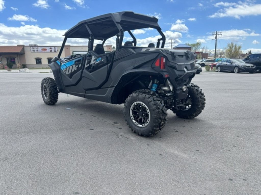 2026 CFMoto ZFORCE 950 Sport-4 FOUR BOLSTERED SEATS. ONE SHARED ADDICTION. The ZFORCE 950 Sport-4 takes the same aggressive DNA as the 950 Sport and stretches the wheelbase to fit four full-sized bolstered seats—so everyone can chase the adrenaline together. The 963cc V-Twin engine delivers 83 horsepower with SPORT and NORMAL ride modes to match terrain or mood. Dual-mode power steering and long-travel suspension keep the ride sharp, while 27" CST tires provide grip that bites when the trail gets loose. Add in premium cabin touches, 12 inches of ground clearance, and cargo space to match—and you’ve got one serious addiction that’s impossible to keep to yourself. Features may include: 12" Ground Clearance Confidently clear trail debris and terrain changes without scraping or dragging. Electronic Power Steering (EPS) Dual-mode EPS offers steering assist that adapts to both speed and selected power mode—light and responsive in tight turns, solid and planted at high speed. Protective Half Doors Formed from tough composites and engineered to deflect trail clutter, the half doors provide solid side protection without sealing out the wild. Hinged and contoured for easy in-and-out, they come standard—not as an afterthought or costly upgrade 27" CST Stag Tires Durable, aggressive tread delivers excellent traction and a comfortable ride across dirt, gravel, rock, and hardpack. Extended Wheelbase with 4-Person Seating The longer chassis accommodates four full-sized riders without compromising handling. Bolstered seats and deep footwells help everyone stay planted and comfortable. Integrated Storage + Cargo Box Includes an 18-liter central console compartment and a standard rear cargo box for tools, straps, and supplies—perfect for long days with passengers or gear.
