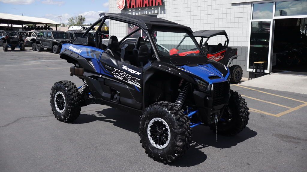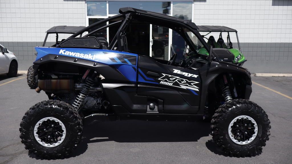 2025 Kawasaki Teryx KRX® 1000 Built from the ground up to be the ultimate sport side x sides, the Teryx KRX® 1000 lineup is not to be denied by the world's toughest trails. The game-changing Teryx KRX 1000 series inspires confidence with a terrain-taming combination of power, performance, and capability. Add in an unprecedented level of comfort and the superior build quality of Kawasaki side x sides, and you've got everything you need to push the limits for an adventure of a lifetime. Now, a pair of new purpose-built side x sides join the Teryx KRX® 1000 family. The Teryx KRX® 1000 Blackout Edition side x side features LED light bars and a Hifonics® audio system for all day and night adventures. The Teryx KRX® 1000 Lifted Edition side x side, with ITP Cryptid mud tires, elevated dual snorkel air-intakes and more, is inspired by wet and muddy conditions. Features may include: SUPERIOR PERFORMANCE BUILT TO CONQUER The Teryx KRX® 1000 sport side x side is purpose-built to outmuscle all terrain and more than ready to overpower any challenge. RUGGED CHASSIS TESTED BY TOUGH TERRAIN To achieve exceptional performance without sacrificing comfort, it was imperative for the Teryx KRX® 1000 sport side x side to be equipped with a chassis with a commanding footprint. High ground clearance is complemented by arched front A-arms and 4-link rear trailing arms. UNMATCHED DURABILITY ENGINEERED TO OUTMUSCLE The Teryx KRX® 1000 sport side x side is built to be the toughest machine out on the trails, factory-equipped with components that are often added after purchase. MODERN DESIGN FUNCTION MEETS FORM The Teryx KRX® 1000 represents a new generation of styling for Kawasaki sport side x sides. Design is elevated to the next level with an aggressive look to complement its groundbreaking performance. ADDITIONAL NEW Showa 2.5 piggyback shocks NEW high output AC generator On-the-fly electrically selectable 4WD and front differential lock Large volume Continuously Variable Transmission (CVT) with centrifugal clutch and high-quality belt Downhill engine braking