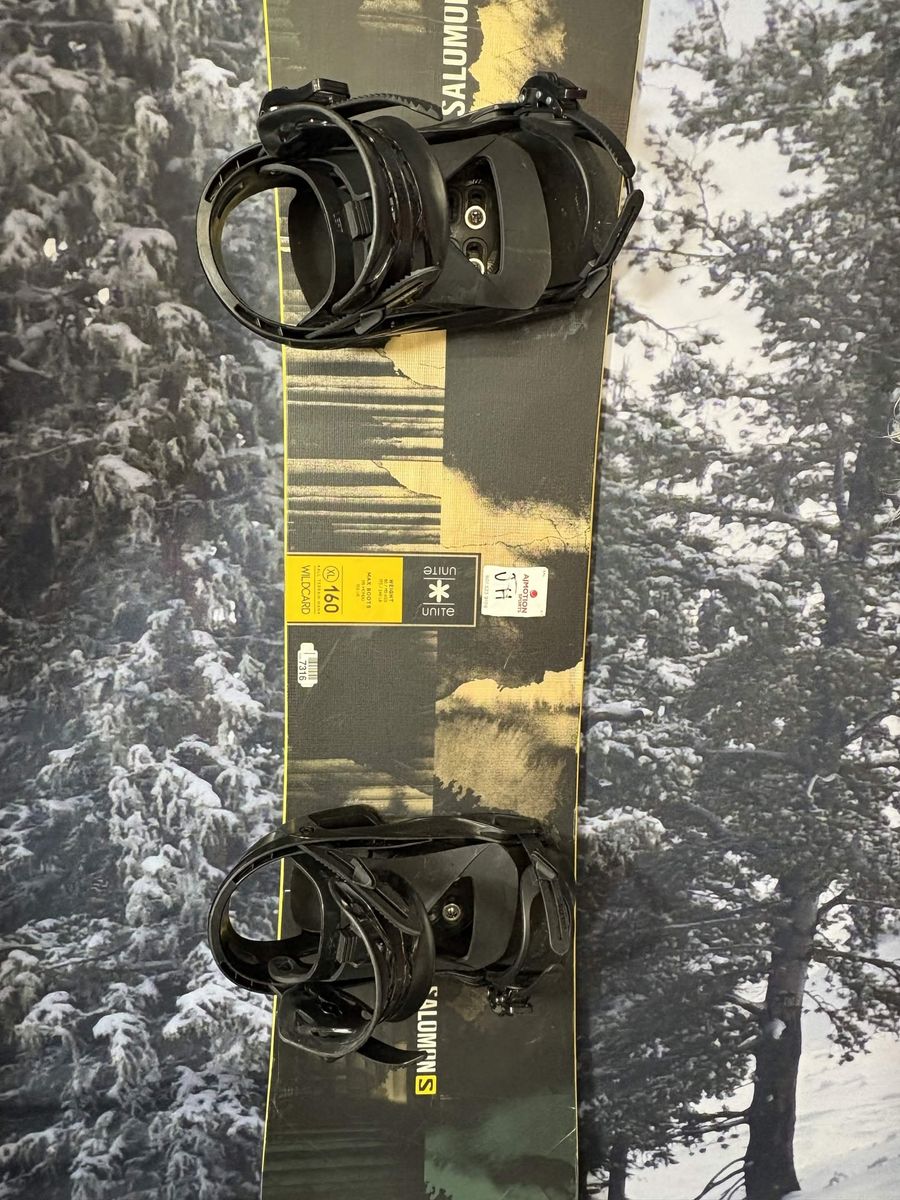 Shop online or in-store, all items can be purchased at ajmotion.com and shipped right to your door! Specs: Board Size: 160CM Brand: Salomon Model: Wild Card D Binding Type: Salomon Pact Binding Size: Large Base Condition: Good - A good base has minor signs of wear and tear with few or no shallow/medium scratches, no deep gouges, and little to no damage along the edges. Top Sheet Condition: Good - A Good Top Sheet shows minor signs of wear and tear with little tip and tail scratching or chipping, and some minor cosmetic scratches across both snowboards, but no major damage.
