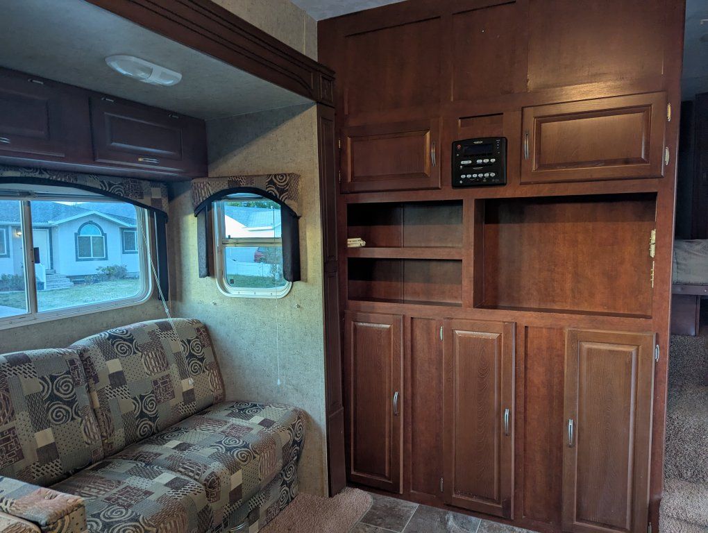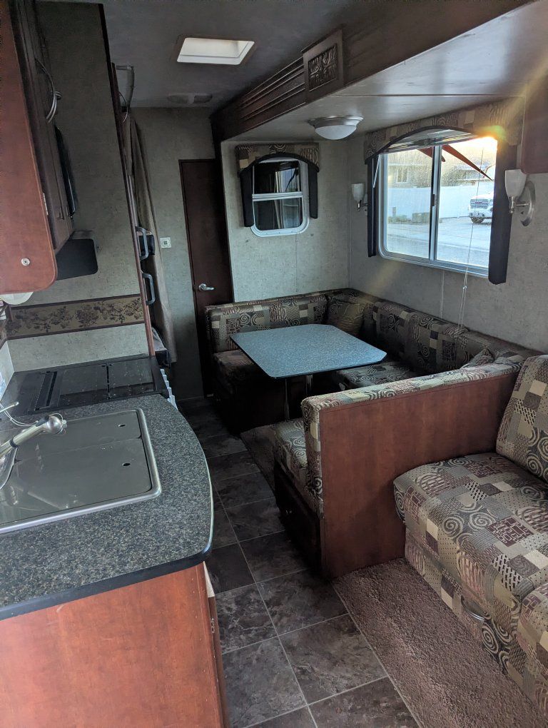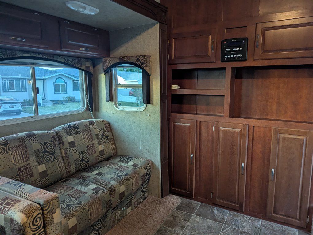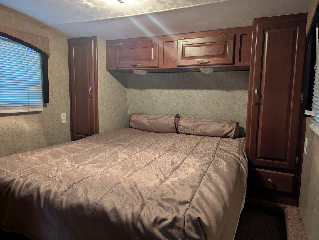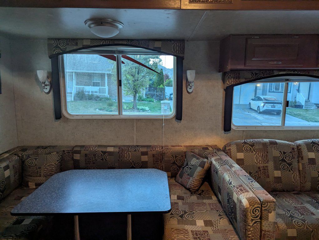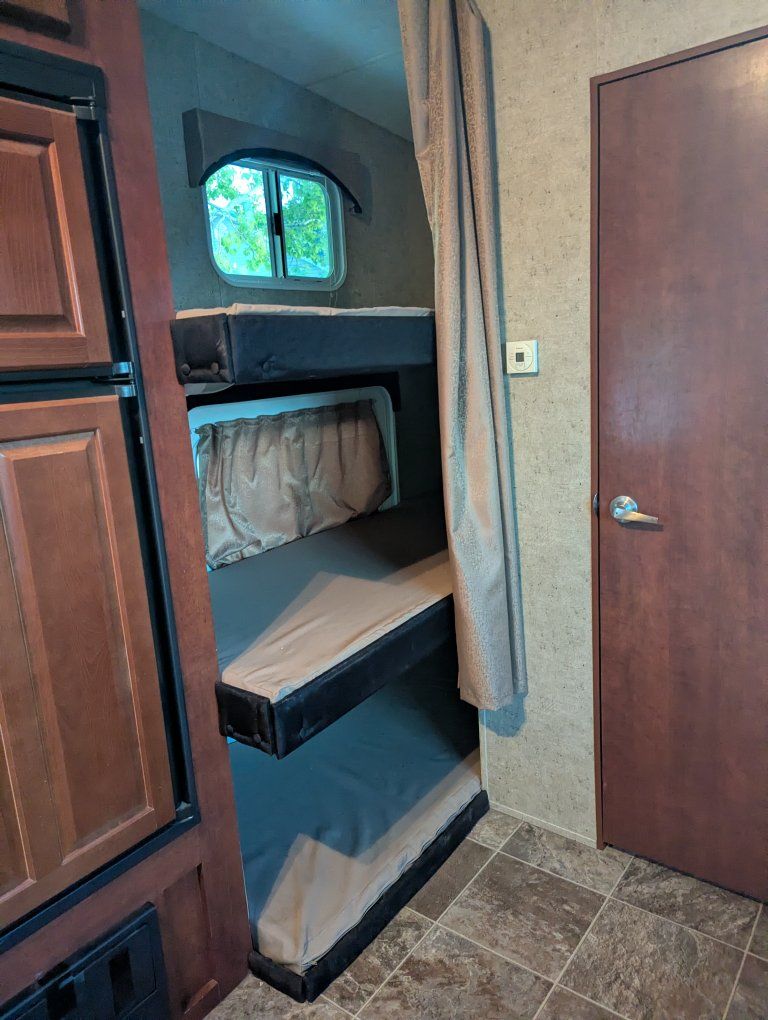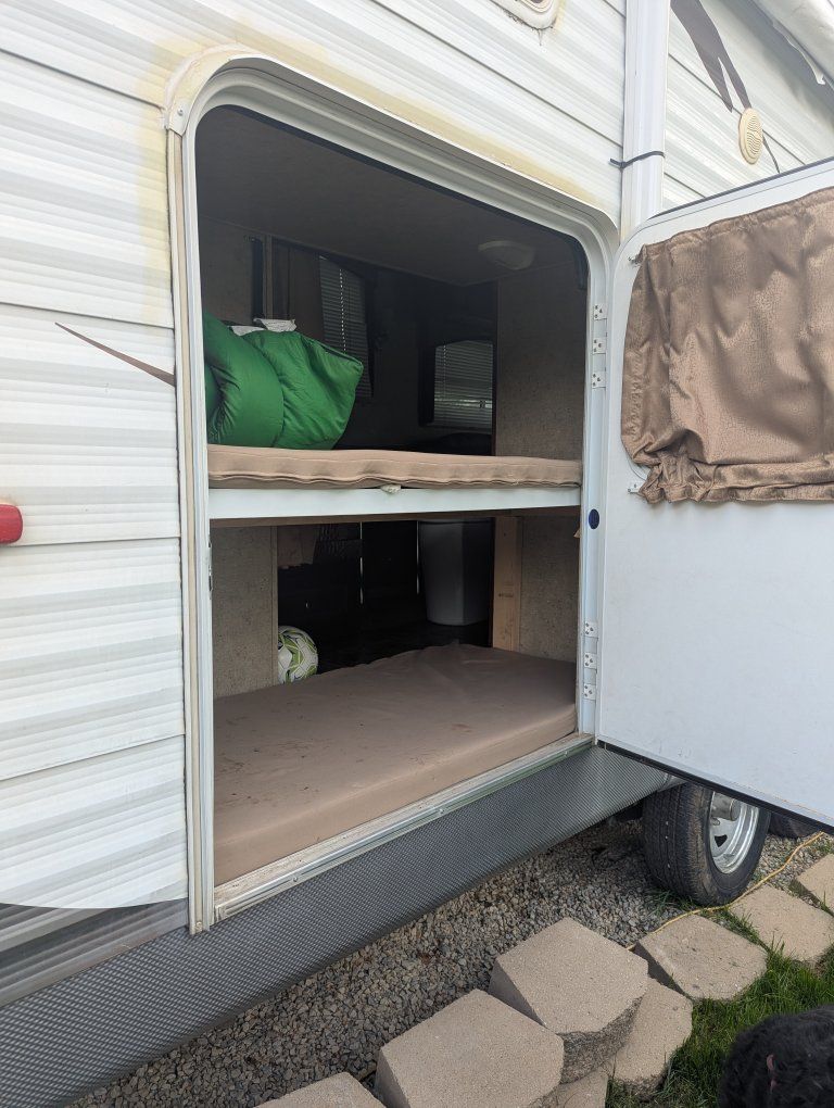 ZelleHas a gooseneck adapter, could revert to fifth wheel. Triple bunk, couch bed, and table bed, in addition to the master queen size bed. Could easily sleep seven people. Brand new stove and oven. Pull out makes it very wide and spacious. Radio and TV hookups. Tons of storage, including the master bed mattress lifting up for additional storage. Canopy was broken when we got it, the fabric just needs to be replaced. It has had a cover on it every winter that we've had it, which has been about 4 years. Cover included. Warranty is transferable. This has been a wonderful camper. We are just downsizing since our kids are grown.