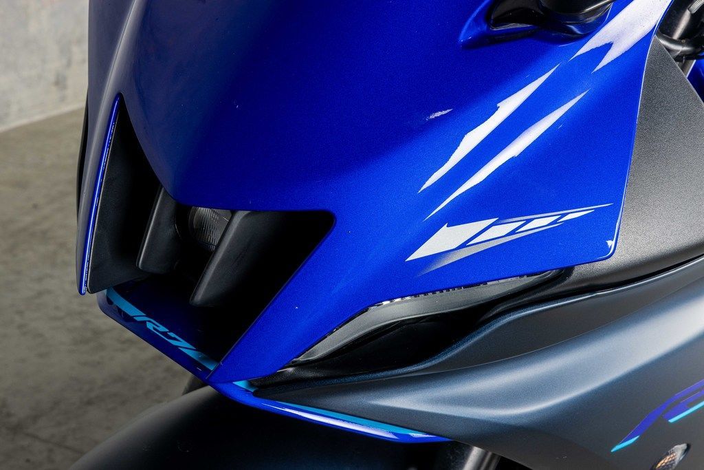 The iconic R-Series M-shaped intake duct and twin-eye look compliments the all-new YZF-R7 along with an adaptive bi-functional LED headlight.