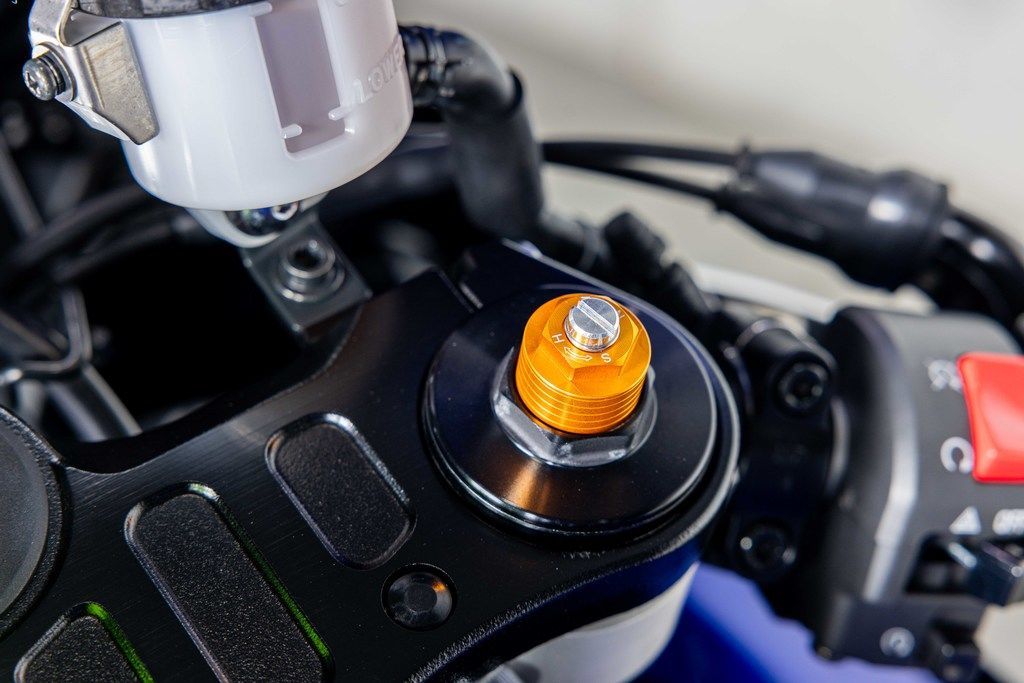The YZF-R7 features a preload, rebound and compression adjustable inverted KYB 41mm front fork offering optimized spring rates and damping settings for an excellent front-end feel during cornering and braking.