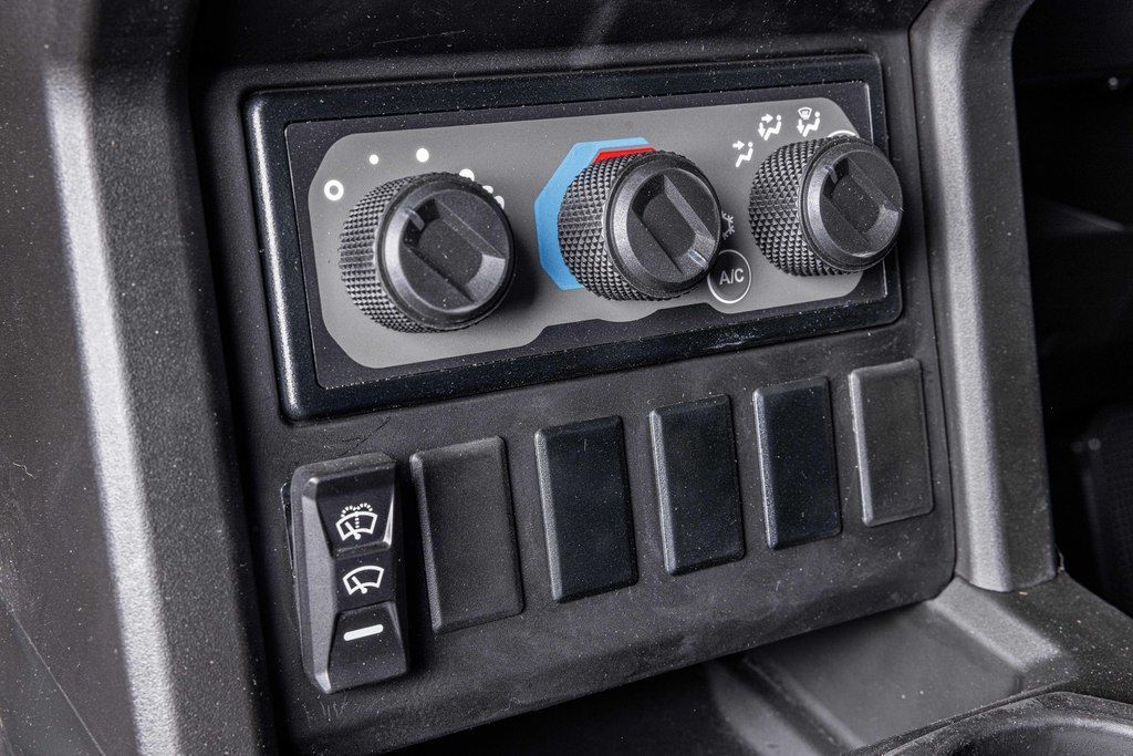 Available enclosed cab, heat and AC, and power window full doors keep the elements out. Control modes allow you to set and direct the airflow of the heat and AC system while the sealed cab ensures it stays where you set it.