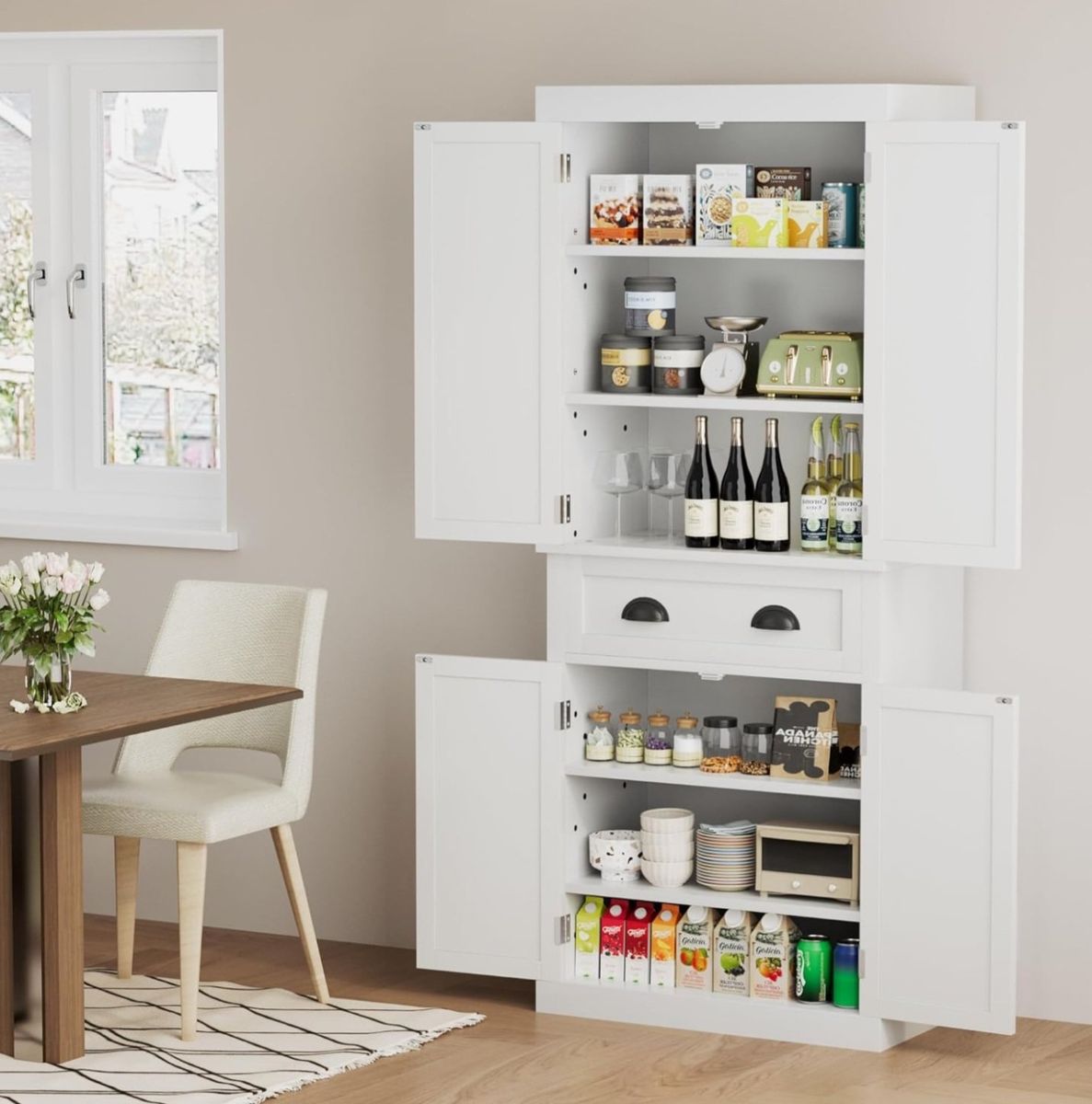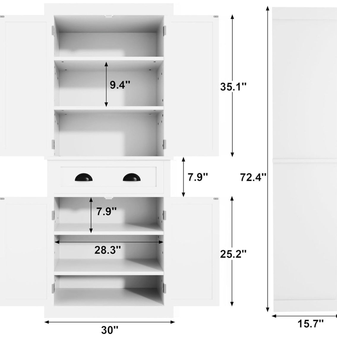 Drawer and 4 Adjustable Shelves, Freestanding Pantry Cupboard Cabinet for Kitchen, Dining Room or Living Room. I have been remodeling my kitchen for almost a year and found this won't fit. Now I can't return it.