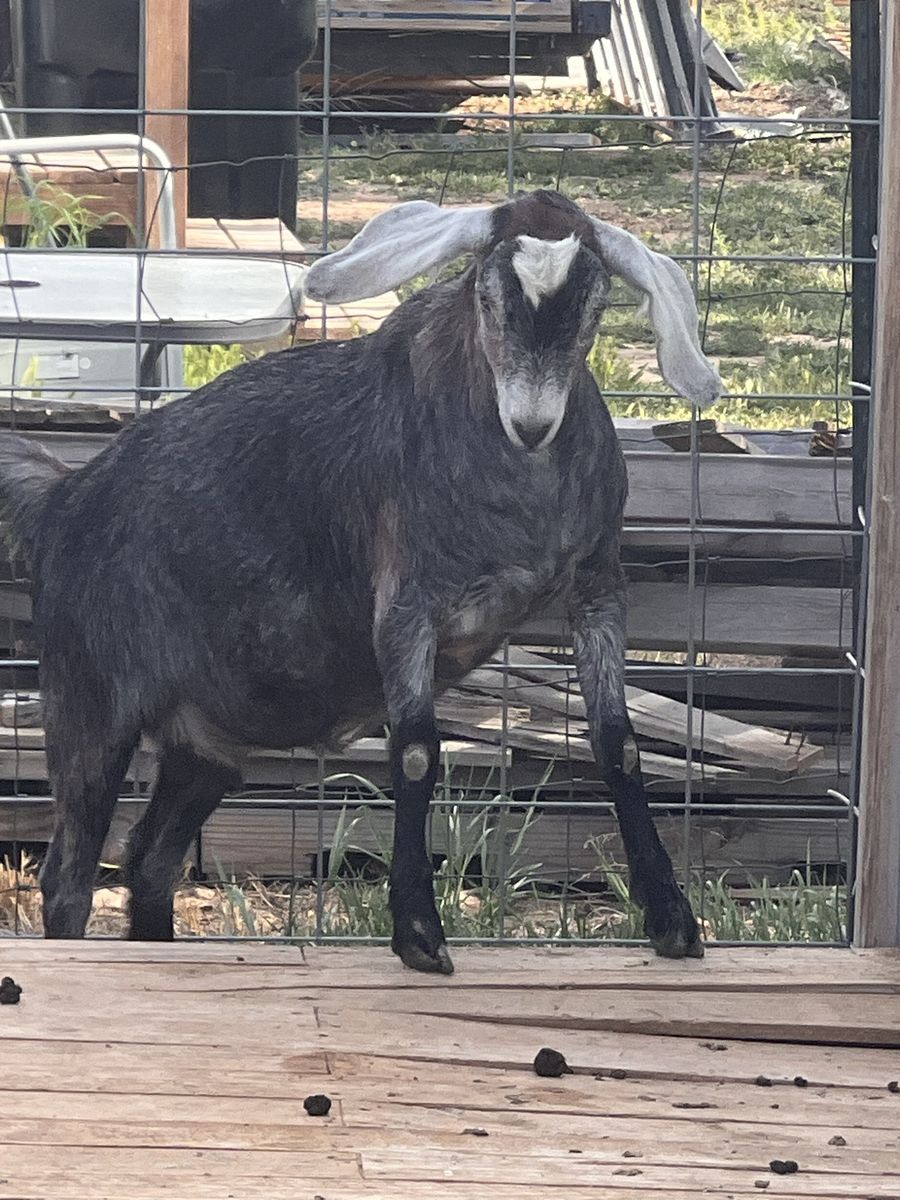 Janice is an 18 month old Nubian doe. She had a still birth last month and needs to be rebred. She’s very sweet and people. Asking $150