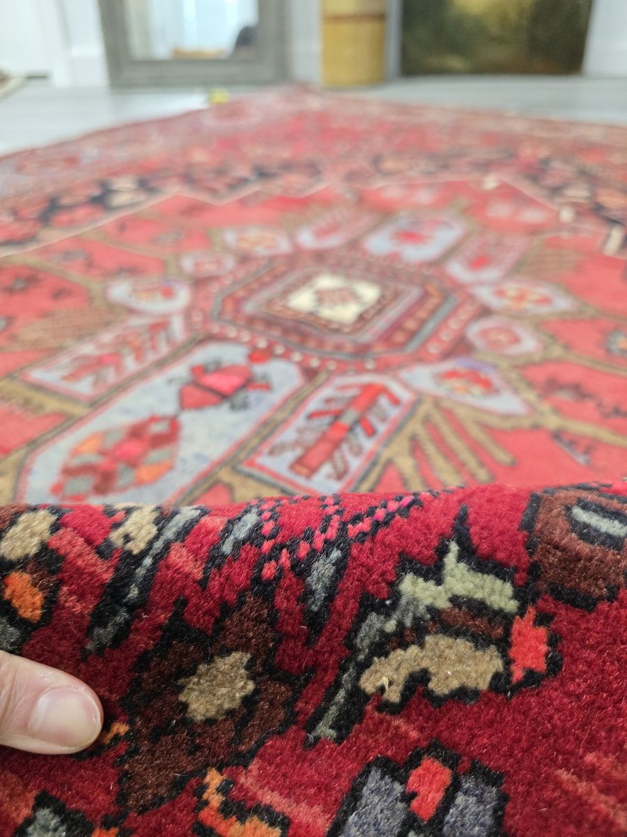 ZelleWhat a nice Bijar rug! I especially like the cool-toned border, because it stands out but also ties everything together. The combination of geometrical and soft floral patterns make this rug feel structured yet fluid. Also, a little fun fact: Bijars are often made with asymmetrical knots and heavy wefts. It gives them that stiff handle that almost feels like textile-meets-armor, which makes sense since they're known for being the iron rugs of Persia. You can certainly feel that with this rug. It's not just durable, it tells a story.