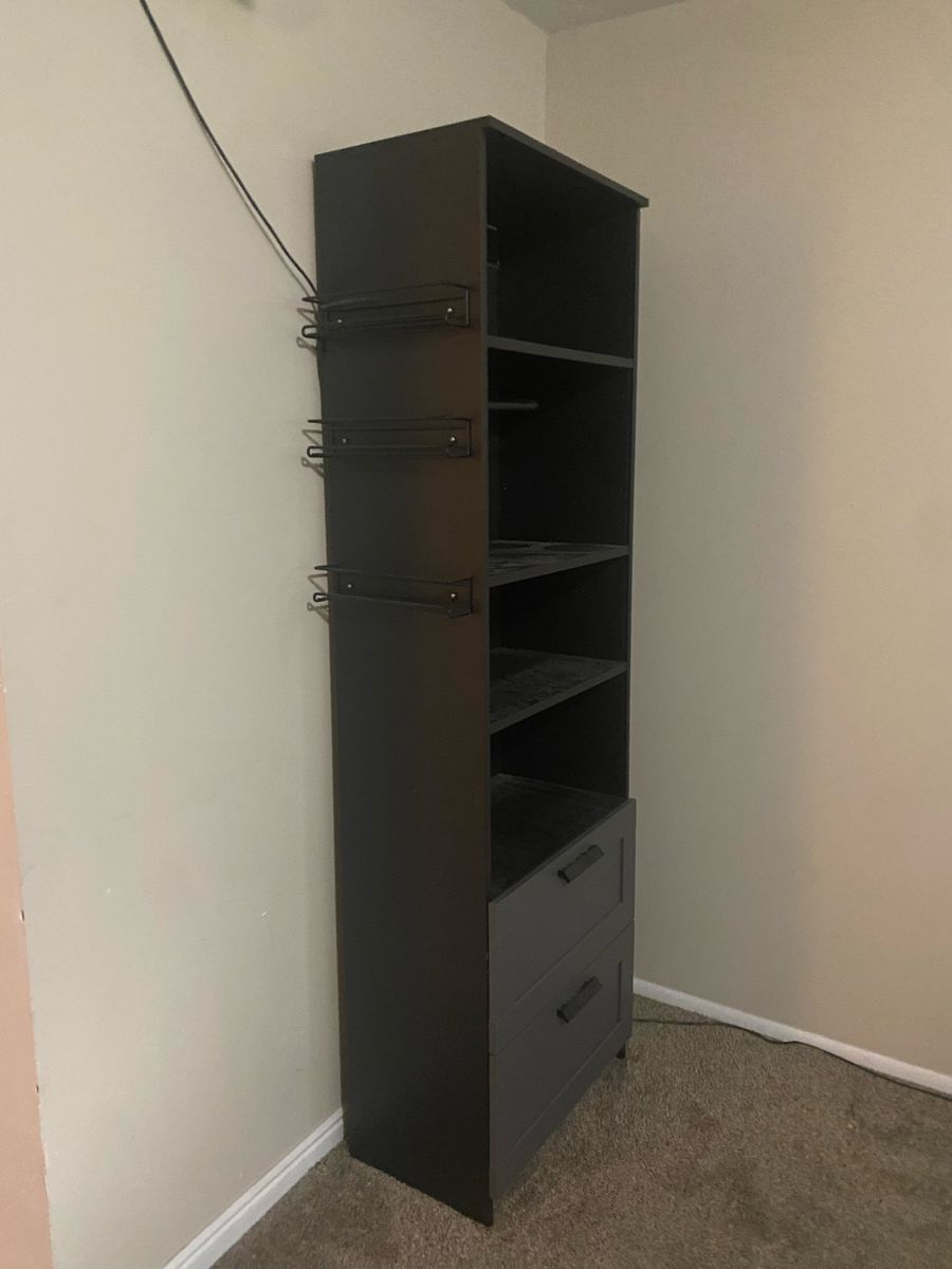 I believe this was used for a tattoo studio has a paper towel rod and the metal shelves on the outside could hold chemicals or ink
