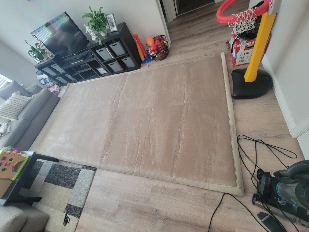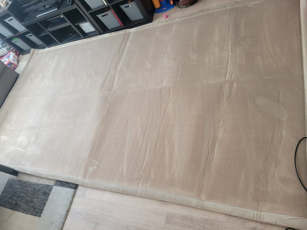 Venmobeige color, gently used. an iron will get the lines out, we just havent done it. no smoke or pets in the home. going new on amazon ror $240. $100 OBO