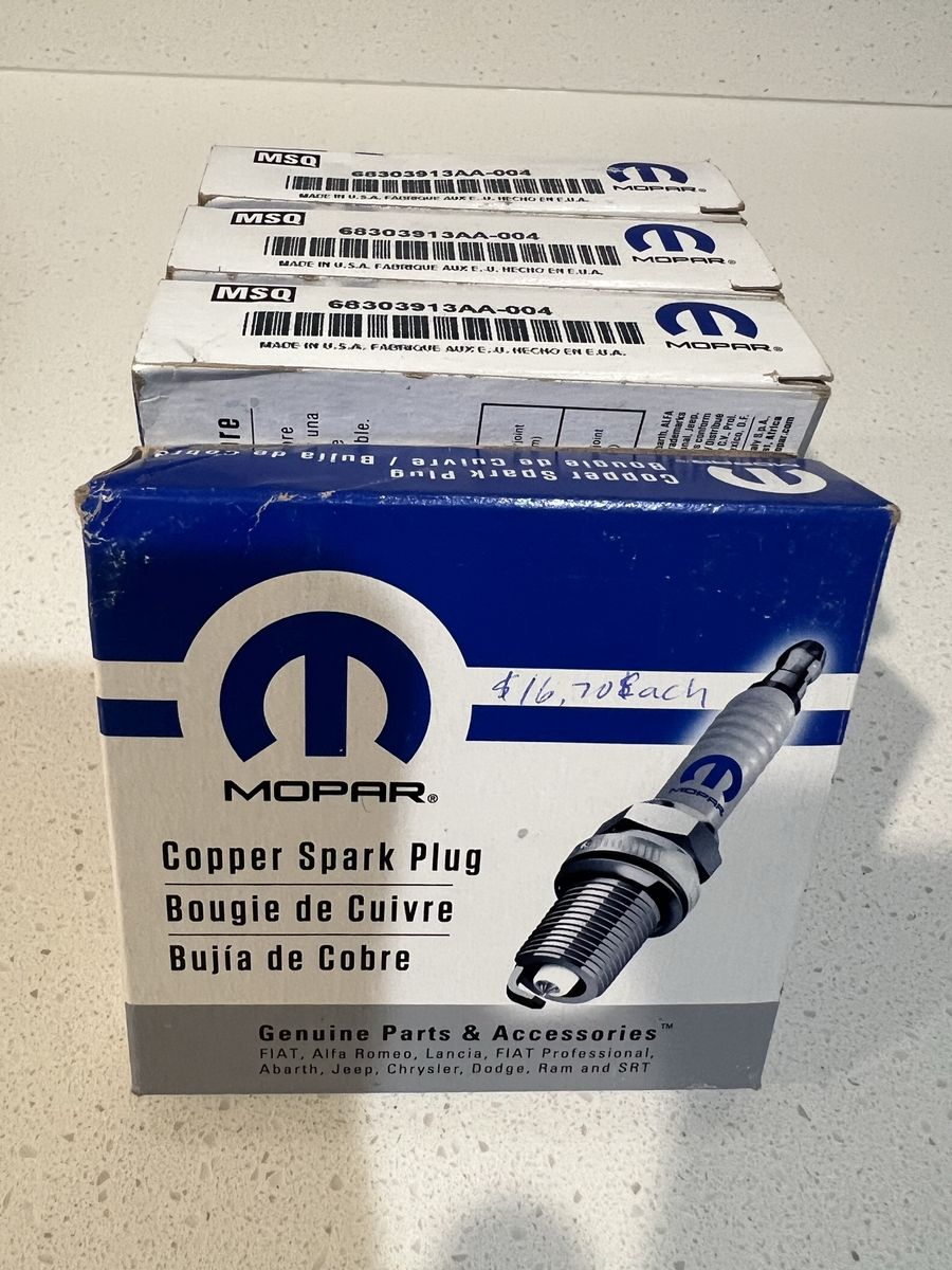 VenmoMopar new unused in og box spark plugs dealer part # 68303913AA. Trucks gone, your price is $200.00 so $12.50ea a plug for all 16….