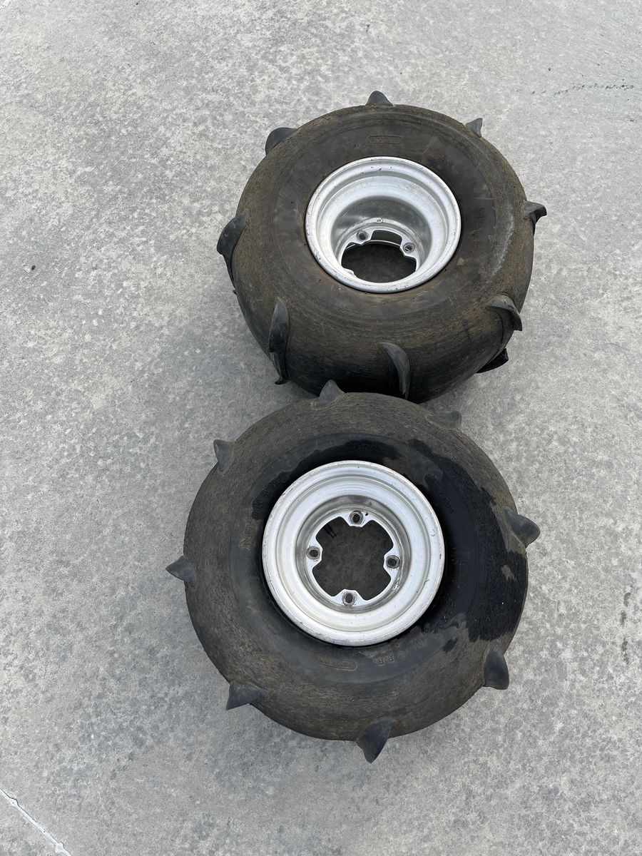 These are OEM 1987 Honda 250 X rims with eight paddle hauler skat-tram sand tires. $160.00Cash only!!!!