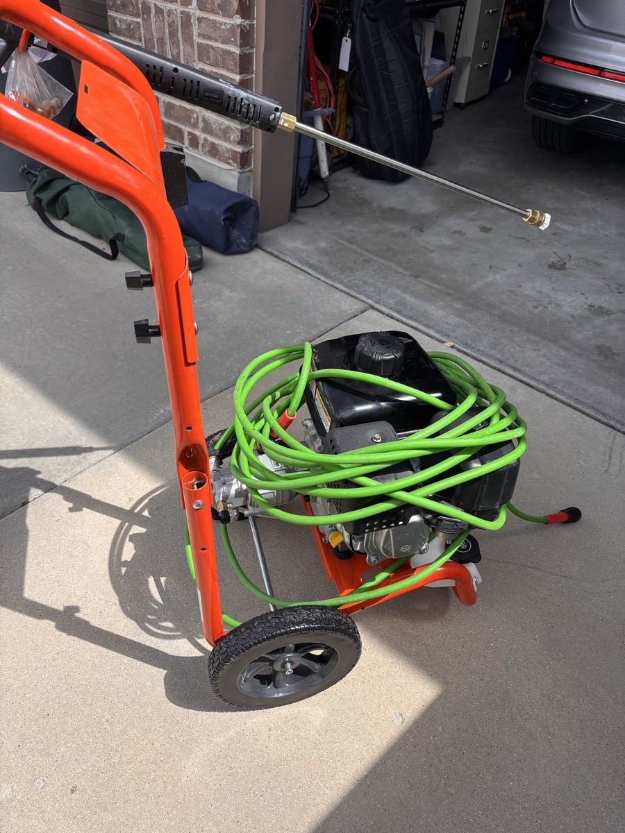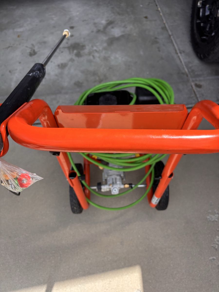 Nice new pressure washer in great working condition! Used only to test it! Comes as shown with hose, wand, and tips! Scuffed up and scraped a bit from being in storage but new nonetheless! This pressure washer is on sale for 429.99 now as shown online and locally! This is the newer model but the same specs! Don’t pay retail prices, call Dustin now at 801-205-3404, I need it gone!