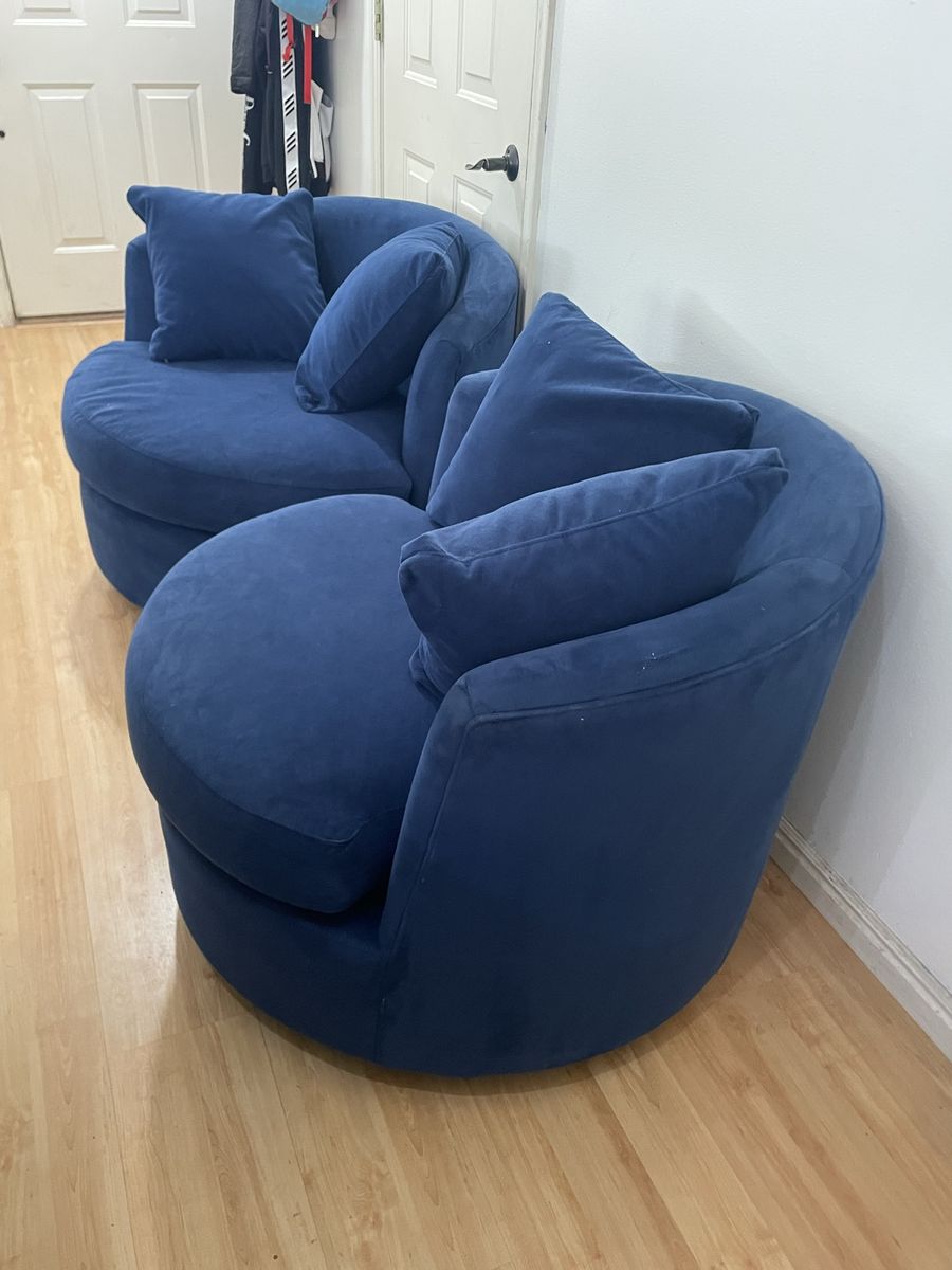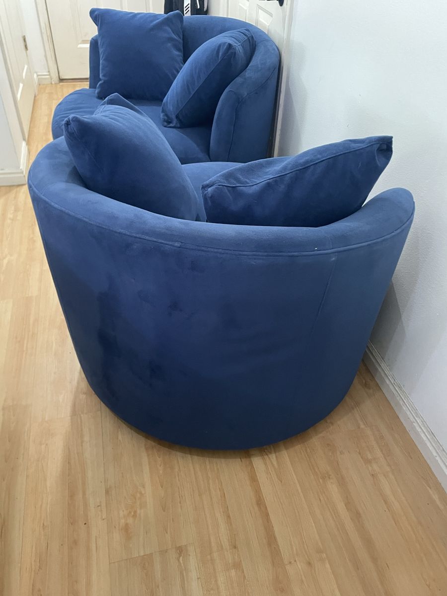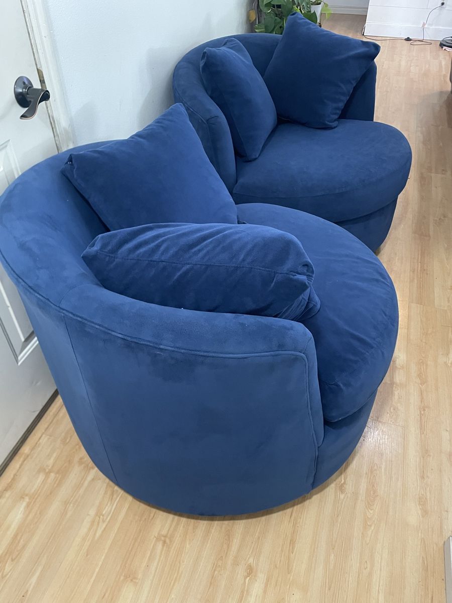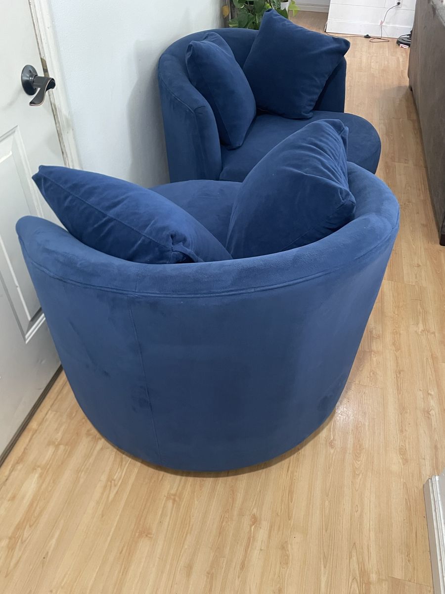 VenmoBeautiful set of 2 blue swivel accent barrel chairs. Super comfortable and clean. Located in provo