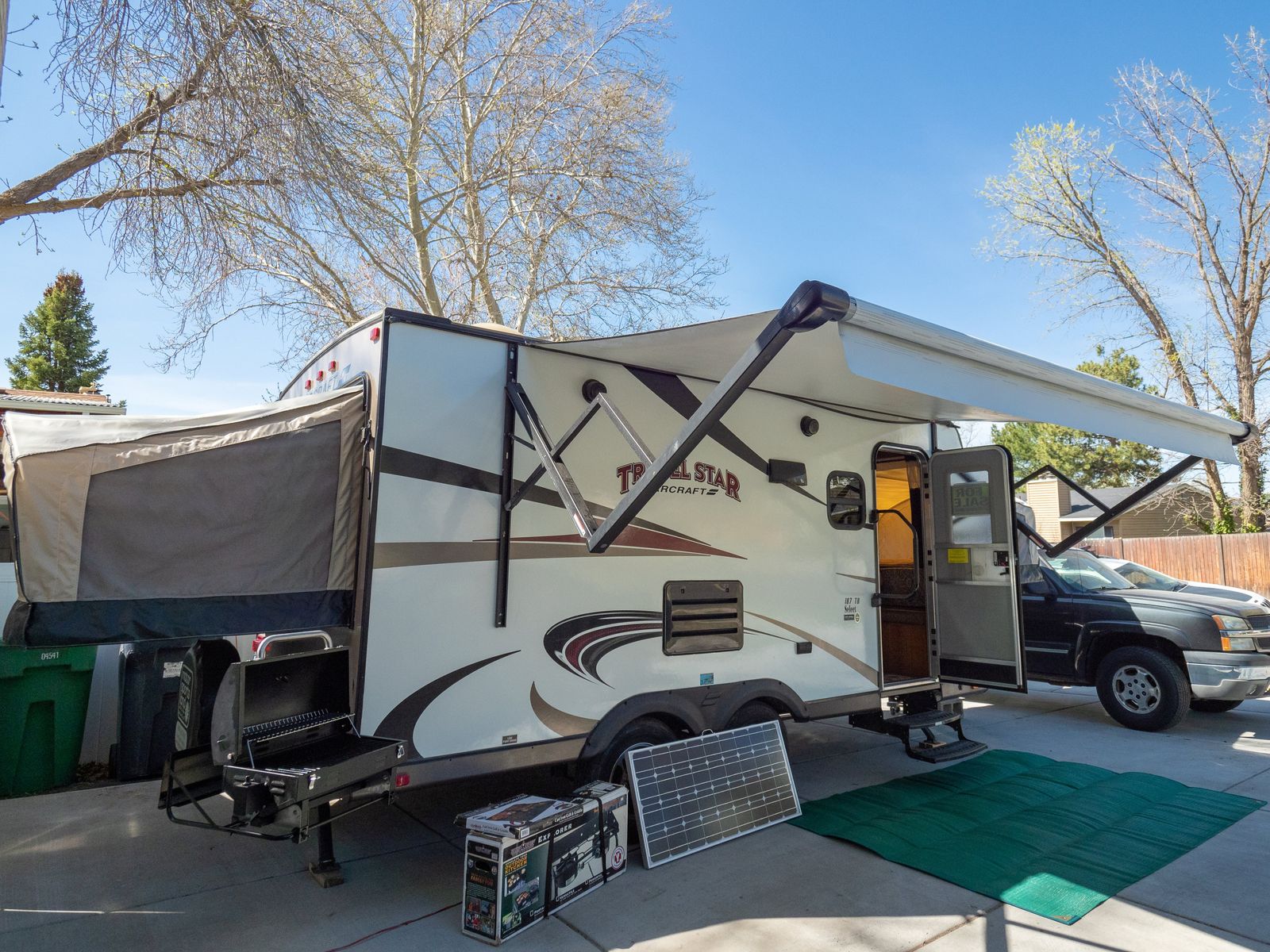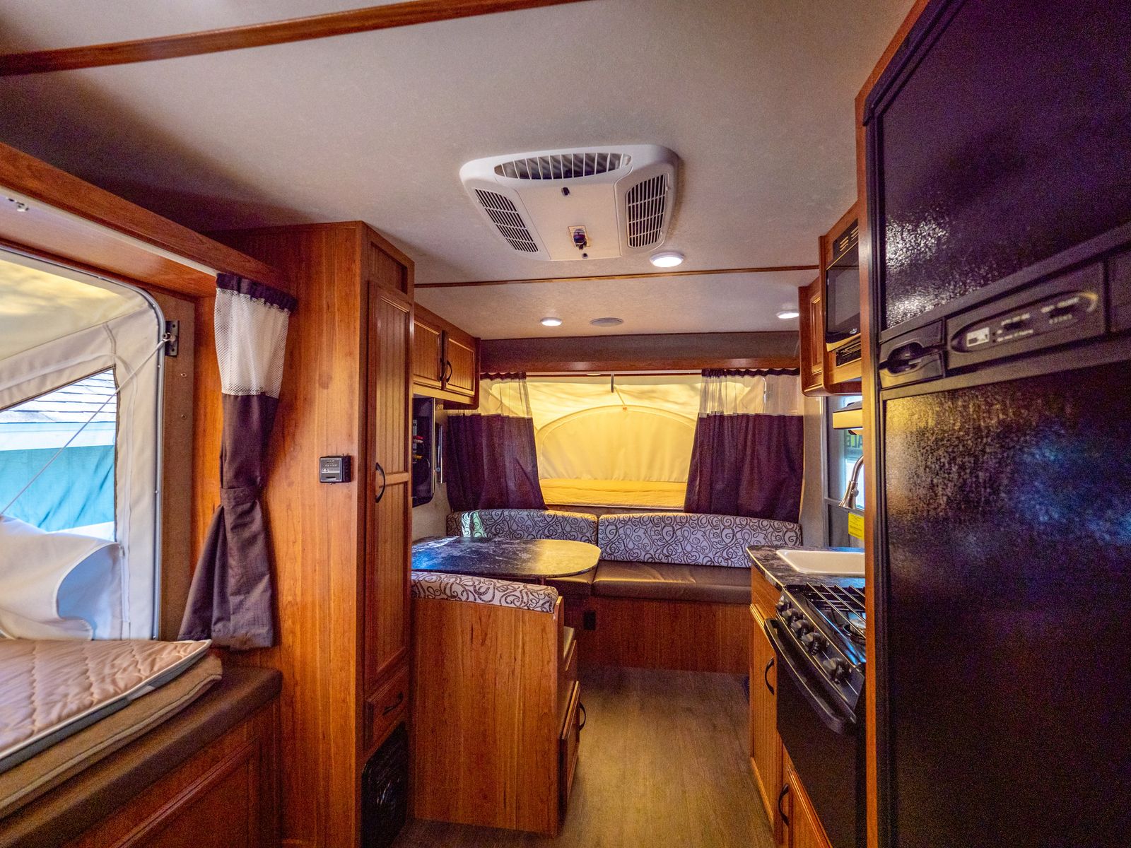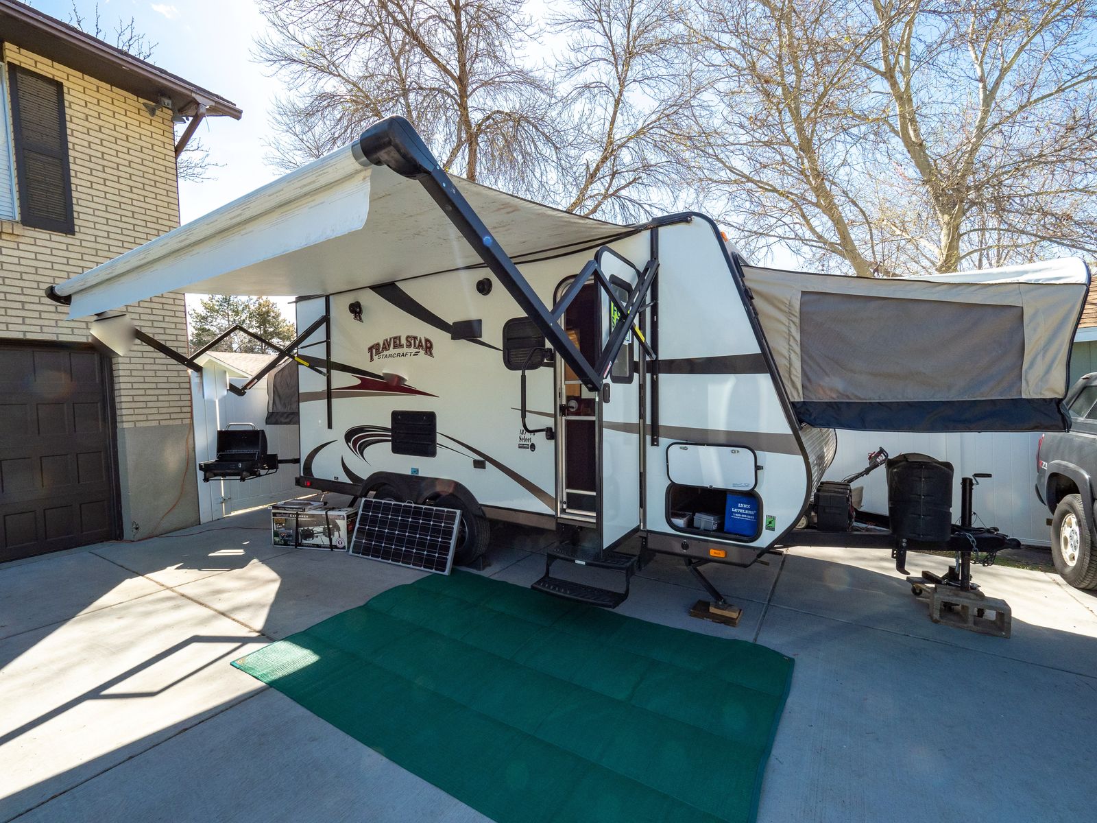 Perfect family trailer that sleeps 7-8. Trailer is a hybrid model that combines the solid body of a trailer with three tent like fold-out queen size sleeping sections and drop-down dinette. It is lightweight and versatile, designed for easier towing by SUVs or pickups. Purchased new and well maintained by one owner. Very clean. Easy setup. For quick details, watch the following YouTube video of this trailer when new: https://www.youtube.com/watch?v=nxODaoMjE7E