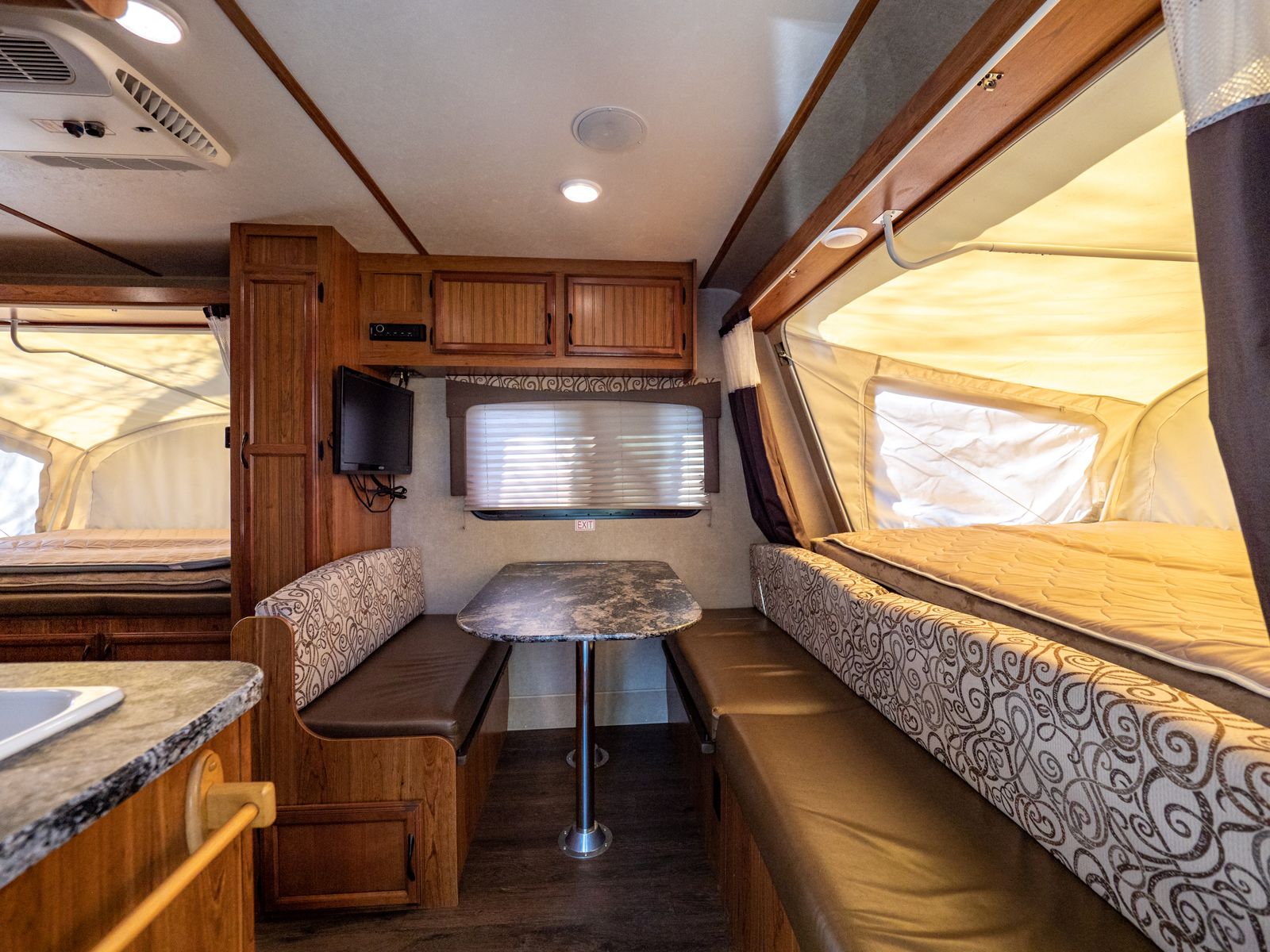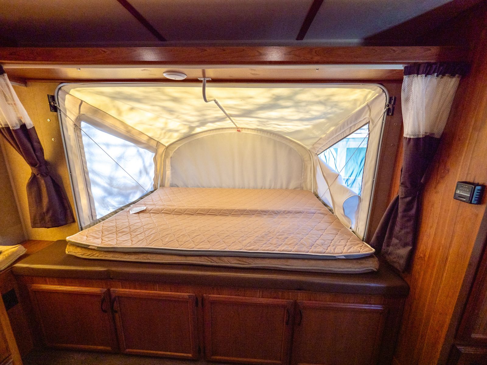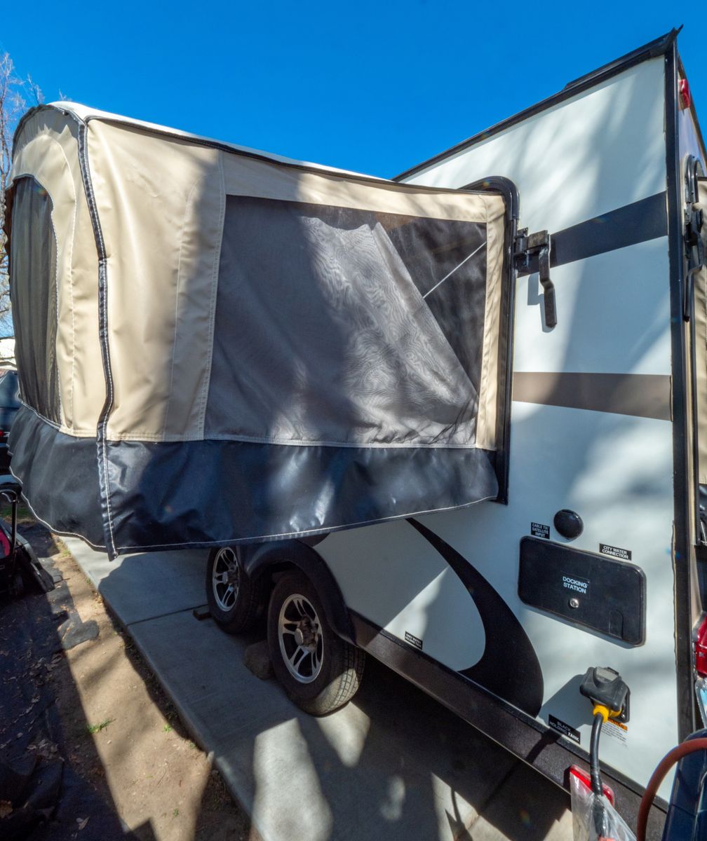 Perfect family trailer that sleeps 7-8. Trailer is a hybrid model that combines the solid body of a trailer with three tent like fold-out queen size sleeping sections and drop-down dinette. It is lightweight and versatile, designed for easier towing by SUVs or pickups. Purchased new and well maintained by one owner. Very clean. Easy setup. For quick details, watch the following YouTube video of this trailer when new: https://www.youtube.com/watch?v=nxODaoMjE7E