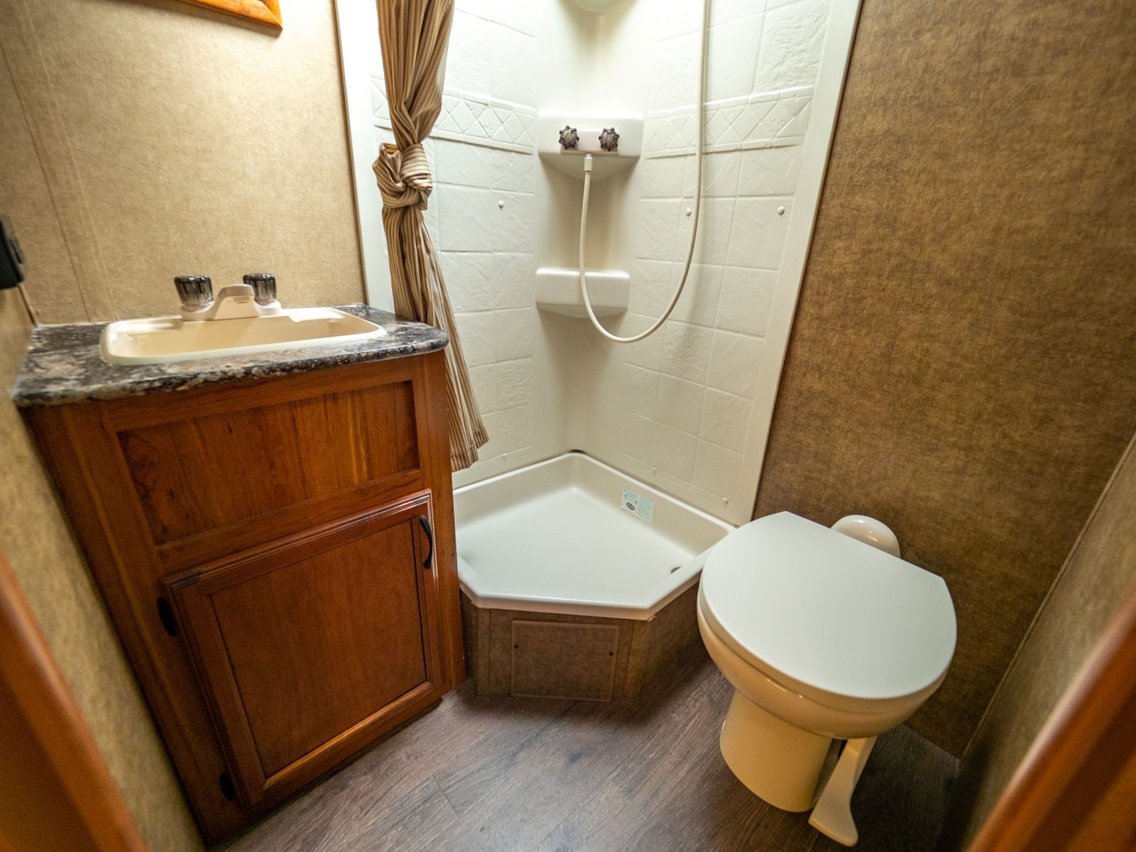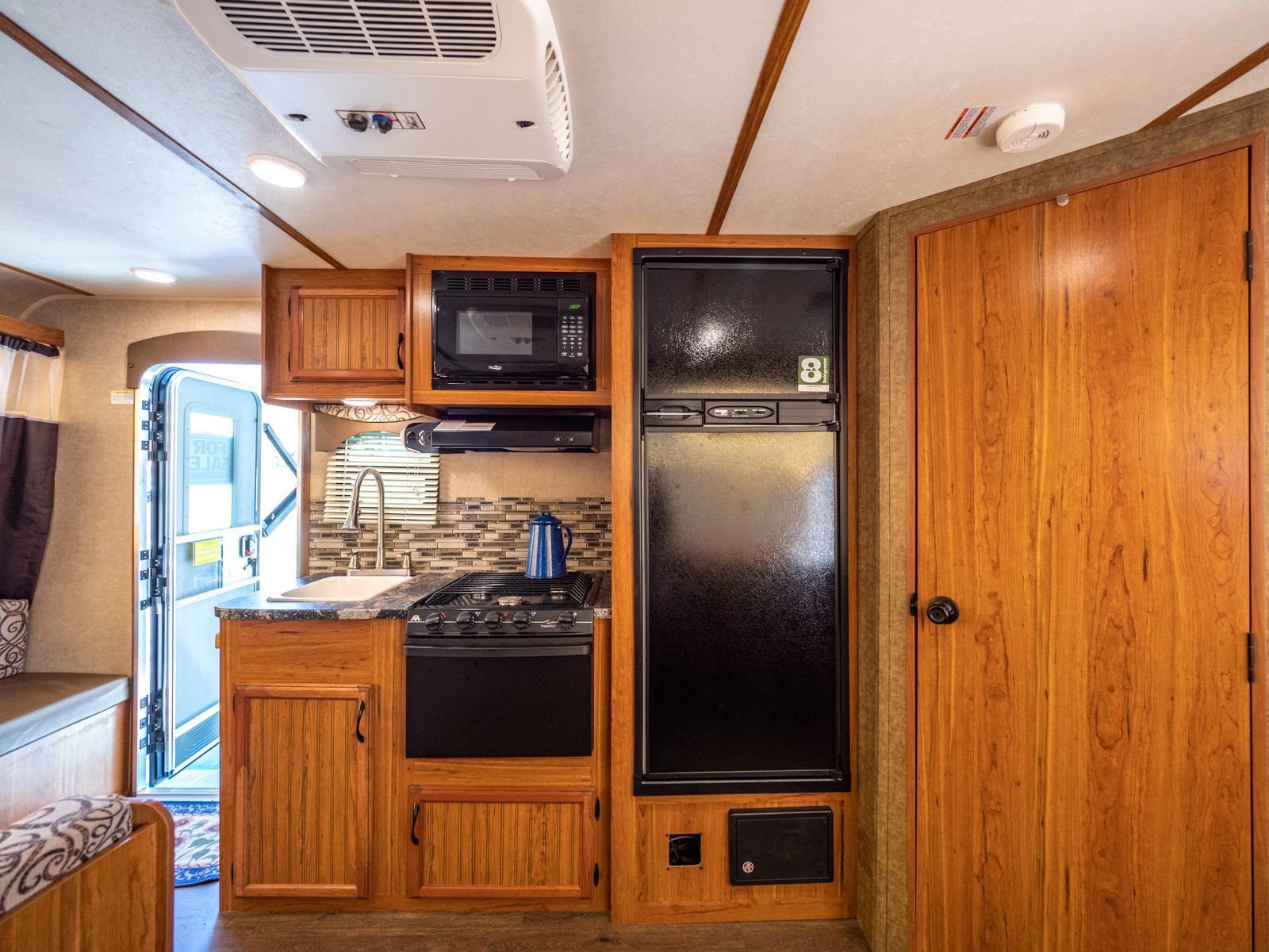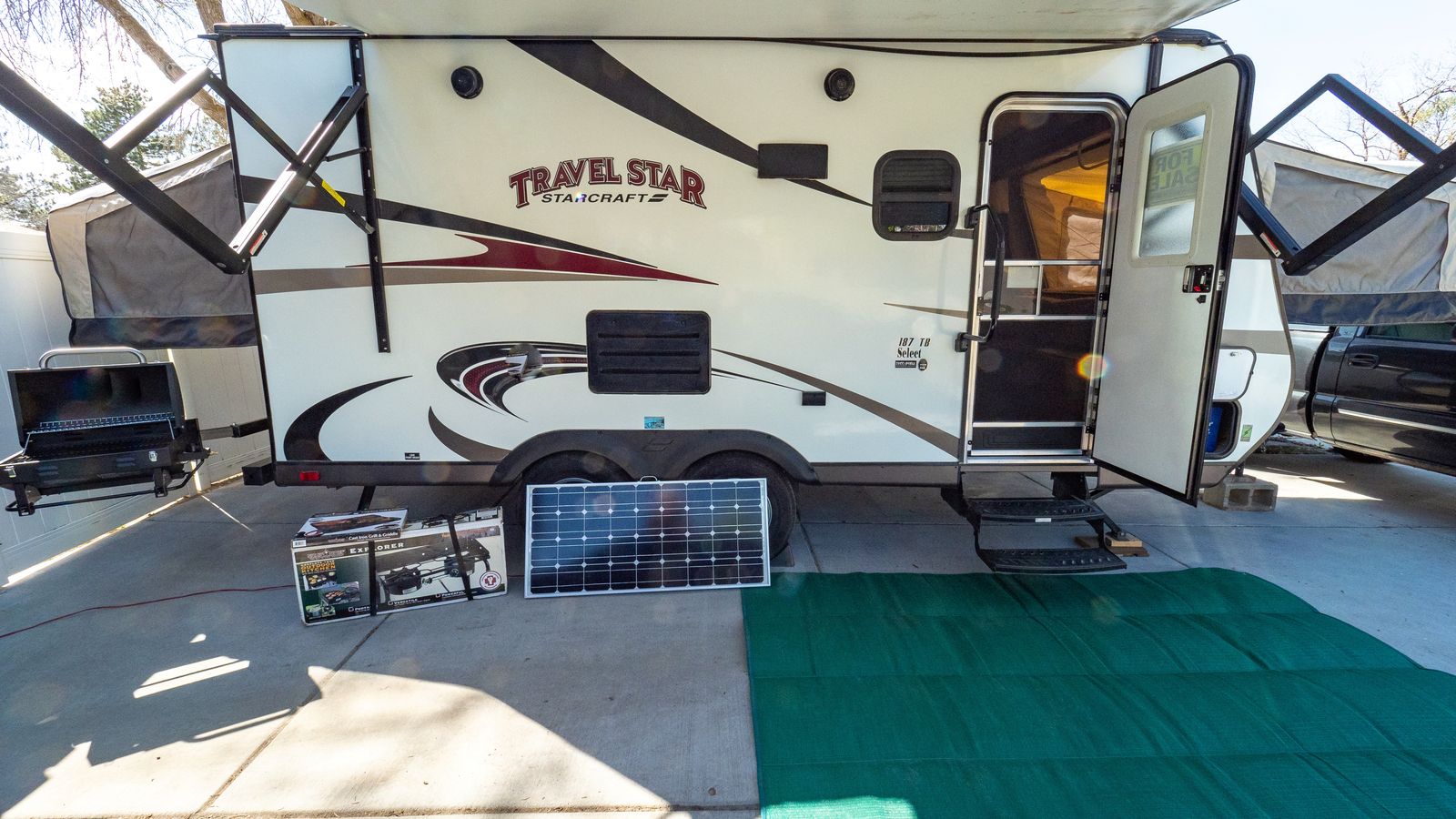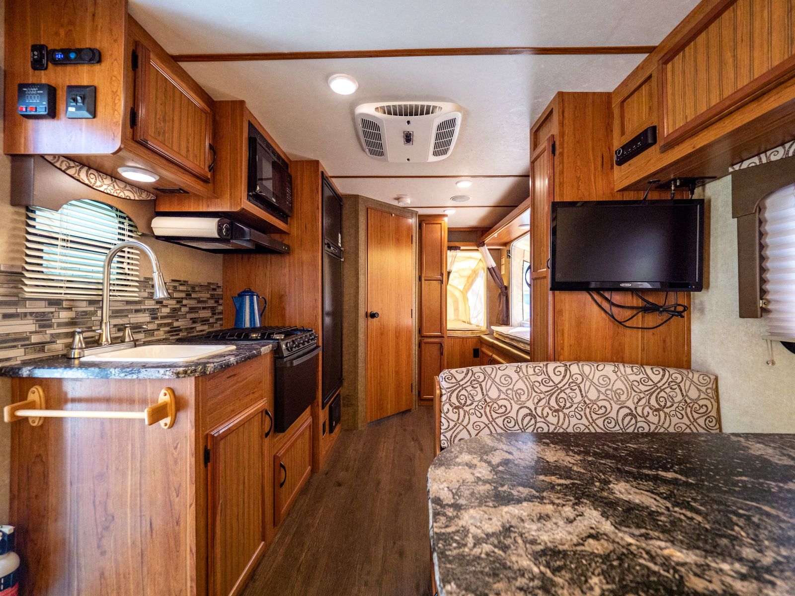 Equipment included in the listed price includes a Load leveling anti-sway hitch. in-cab brake controller, freshwater hose, 100-watt solar panel, Outdoor patio rug\carpet, exterior cover for storage, tools for hitch adjustment and tires. Also included is a Camp-Chef two burner outdoor stove complete w/ portable cast iron grill. Note: price may be adjusted based on your need for this equipment.