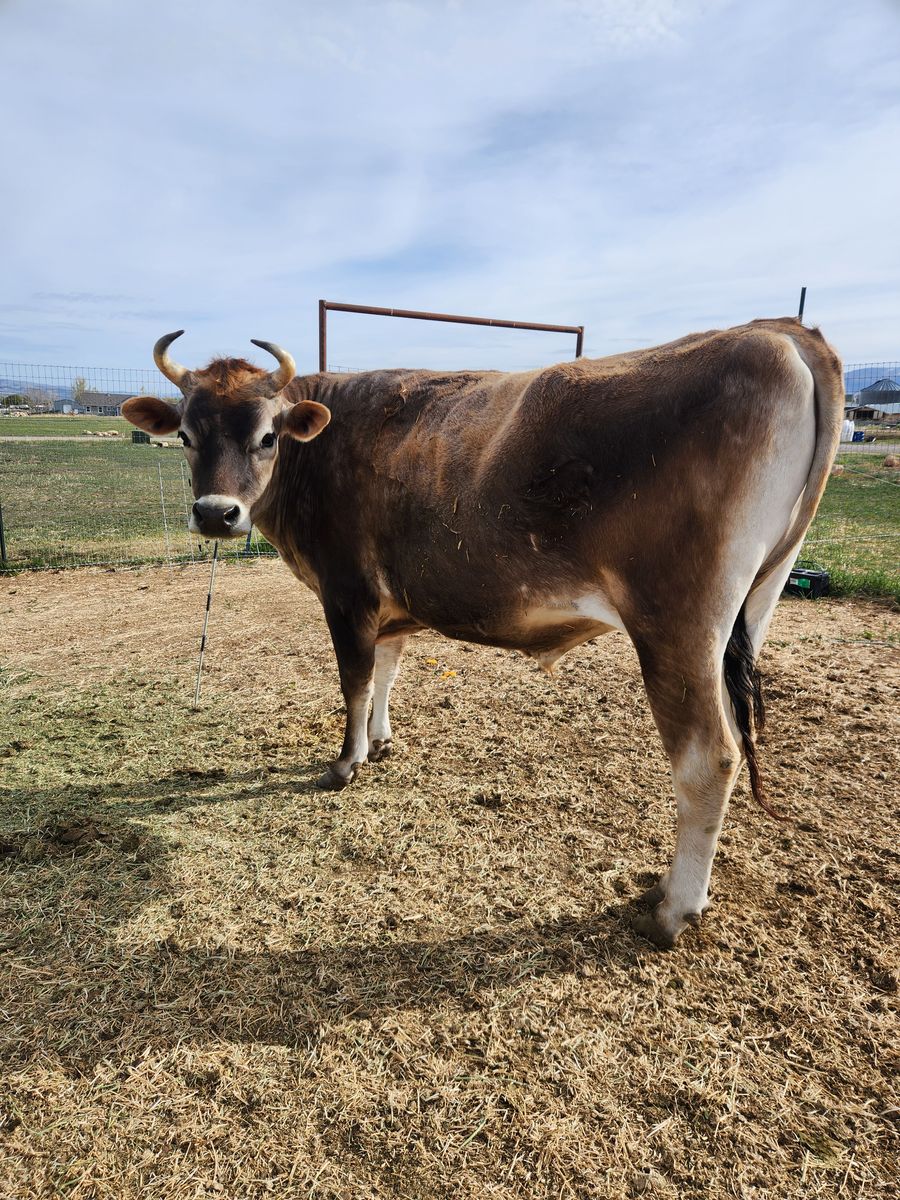 Very big (5' tall) purebred jersey steer. Halter trained, gentle and friendly.