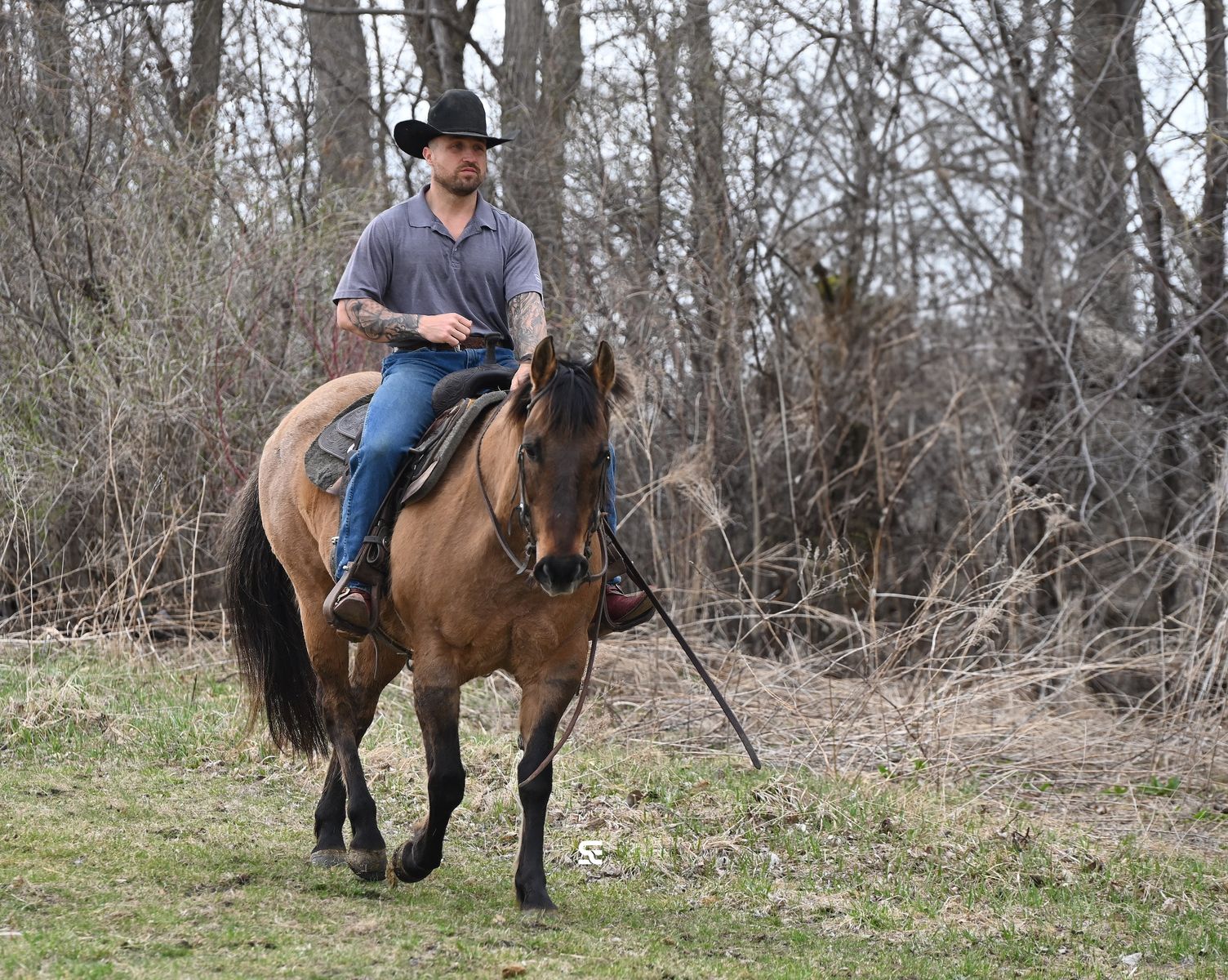 On the ground, he is as gentle and easy as they come. Good to be around, respectful, and the kind that makes everyday handling simple. Under saddle, heβll walk, trot, and lope around in the arena without any issues. Weβve messed around with tarps, ropes, and balls with him and he just goes along with it, no drama, no overreaction.