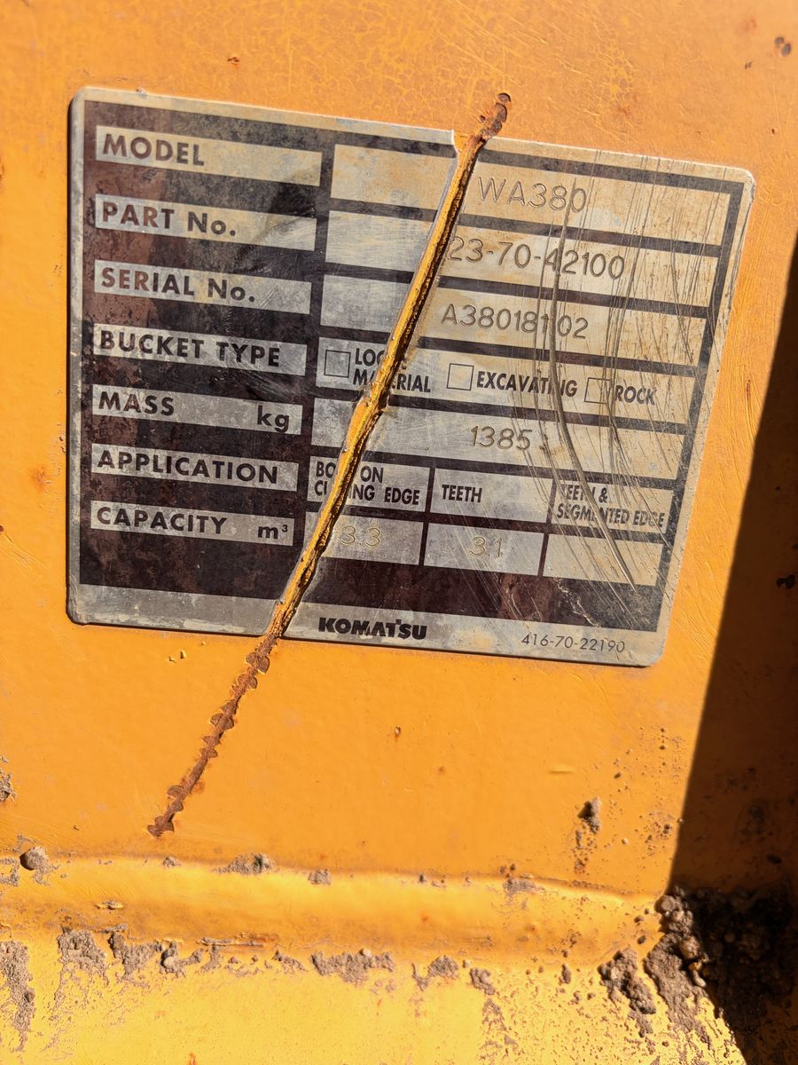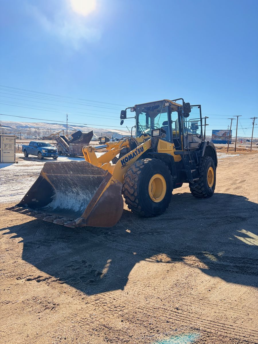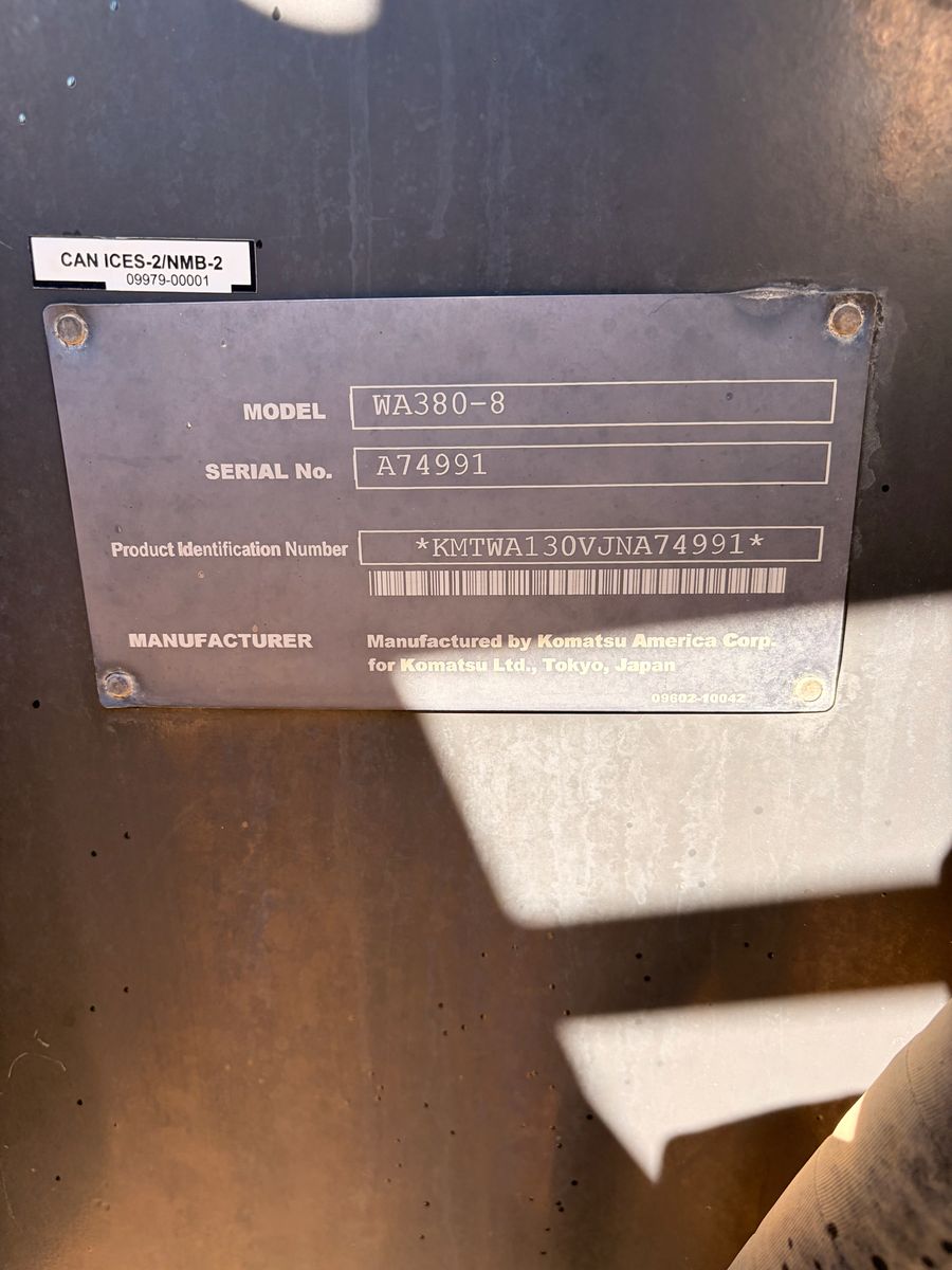 Year: 2019 Make: Komatsu Model: WA380-8 Engine: Komatsu Turbo Diesel Transmission: Powershift Hours: 7282 showing S/N: KMTWA130VJNA74941 Detail: Enclosed Cab Heat/AC, Backup Camera, 120″ Bucket, 4wd,