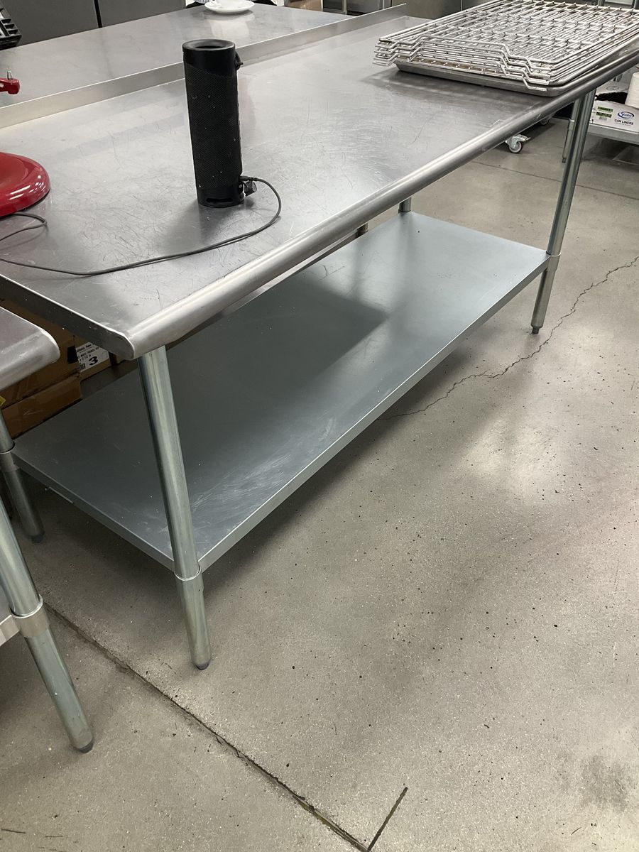 VenmoThis commercial-grade work table is built for strength, durability, and everyday kitchen use. Perfect for restaurants, bakeries, catering operations, or food prep areas, it features a spacious stainless steel top that’s easy to clean and resistant to corrosion. The sturdy construction provides a stable surface for prepping, plating, or equipment storage, and includes an undershelf for added storage. Known for reliable quality, Advance Tabco tables are designed to handle busy kitchen environments with ease. Unit is in good condition and ready for immediate use. A practical and dependable addition to any workspace. We have 3 all different sizes but can be sold seperate.