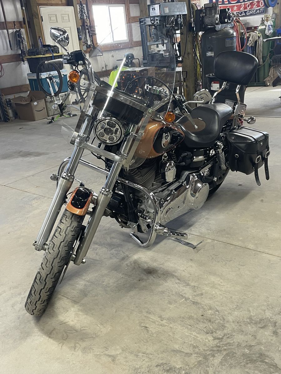105th anniversary 2008 FXDC Harley Davidson Super Glide. Twin Cam 96 V-twin engine. 38,214 miles. Equipped with quick connect windshield, quick connect saddle bags, Vance and Hines exhaust system, quick connect sissy bar, crash bar with highway pegs, and also fuel pak tuner by Vance and Hines that has yet to be installed. Seat has some wear as shown in picture. $7,200 OBO