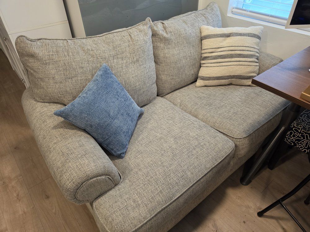 2 Couch set Three cushion and a two cushion couch. Has a deeper seat comfortable and a great price for the set. pillows not included I am not selling these separately.