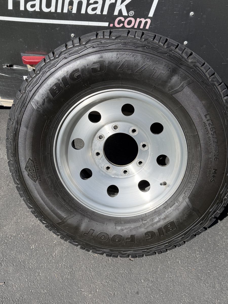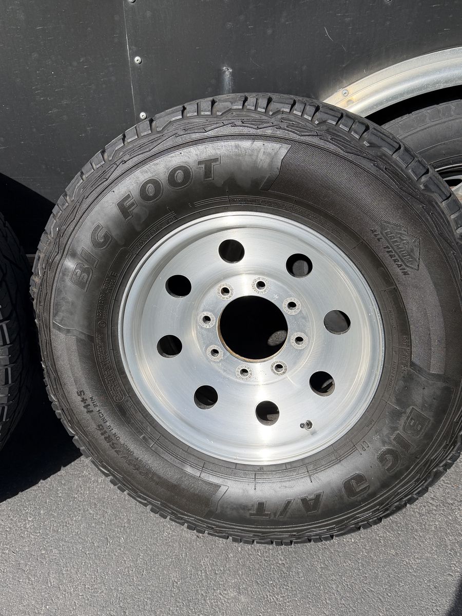 ApplePay4 16” Aluminum rims and tires. LT265 75 r16. Good tread left (see pics).