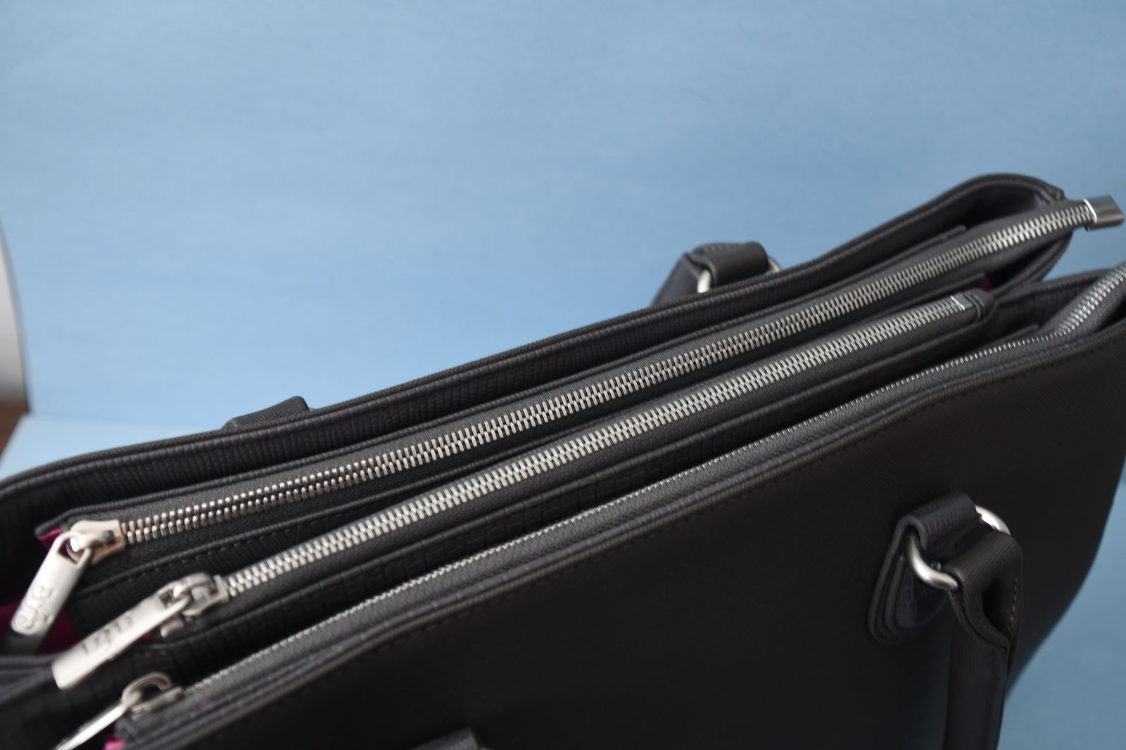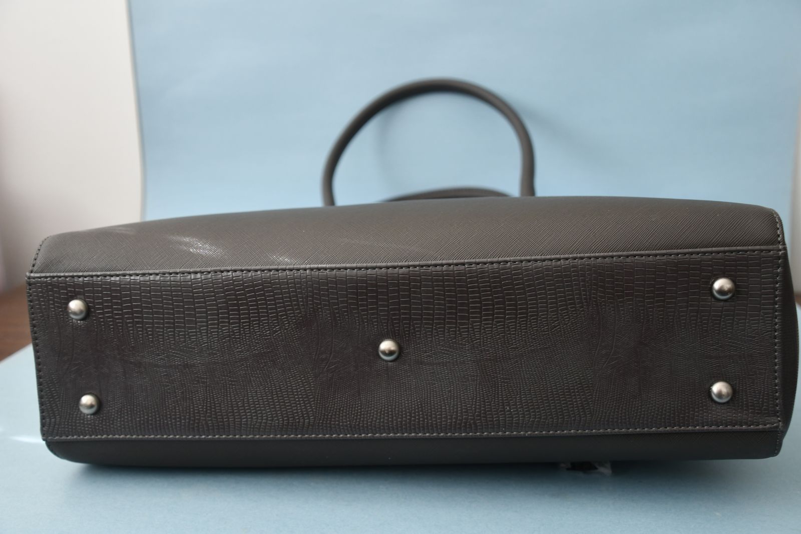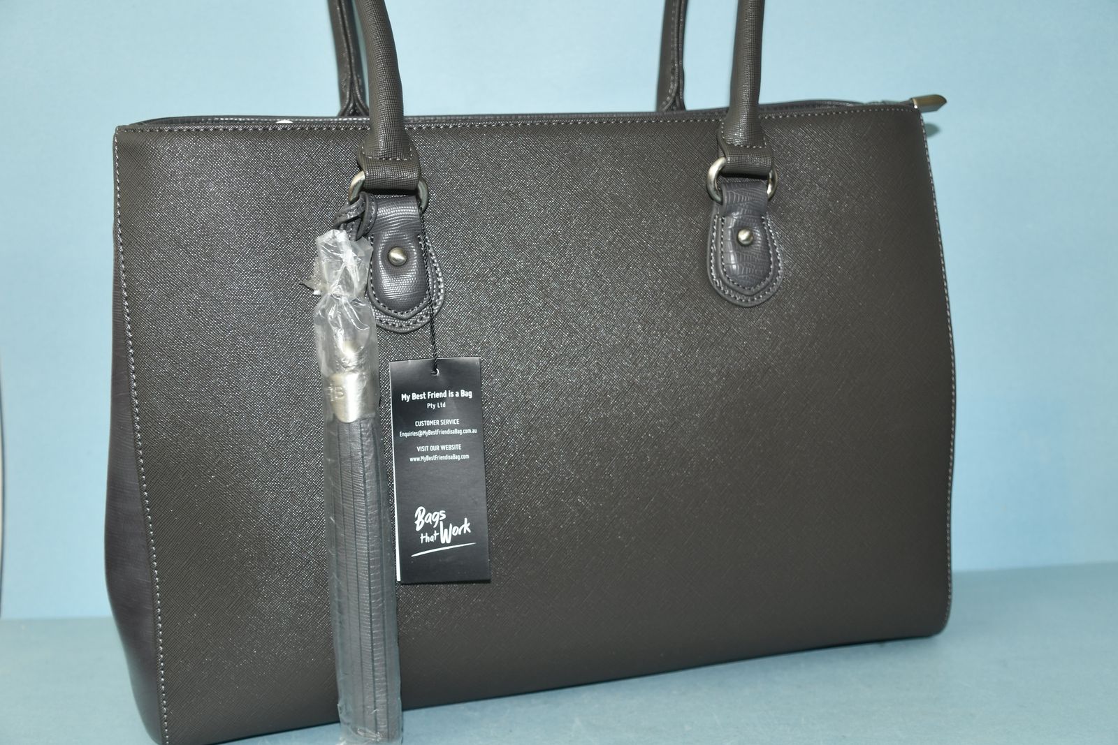 This NWT WOMEN'S GRAY HANDBAG is about 11.5" x 16" x 4". It has PINK LINING. It has 3 COMPARTMENTS (the middle one is padded). The SHOULDER STRAP is removable. Questions??? Please ask. We are located in Plain City. Cash only please.