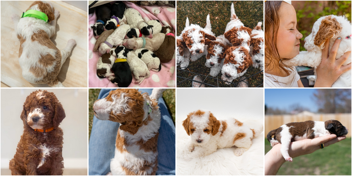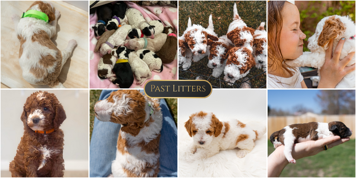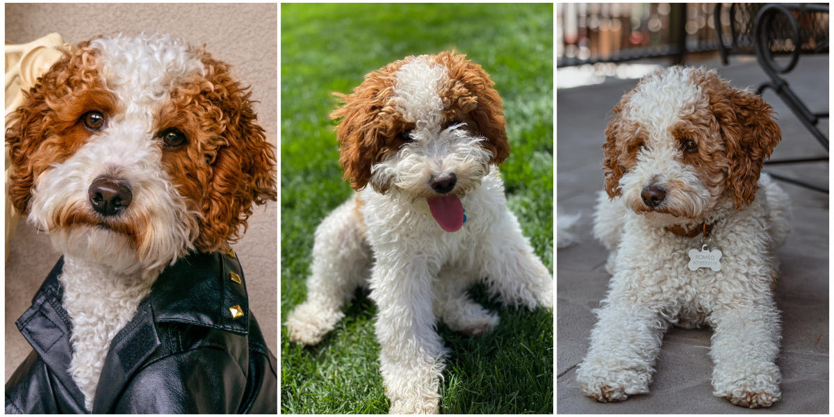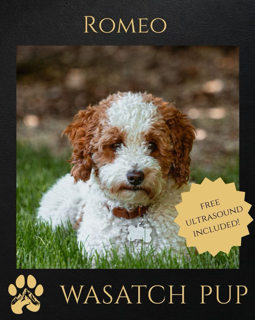 About Romeo Romeo has a darling teddy bear face, a shorter snout, and soft red-and-white curls that give him a signature look. He’s loyal, smart, incredibly affectionate and always ready to cuddle with his mom and dad. His balanced energy makes him both playful and calm, a perfect companion which will pass on to all of his offspring.Romeo has produced litters of up to 16 puppies (depending on the female), each one healthy, beautiful, and full of personality. His genetics, structure, and temperament combine to make him a proven choice for breeders seeking quality, temperament, and that classic teddy-bear look.