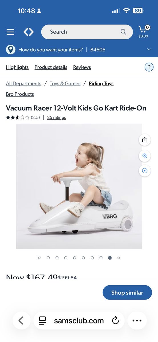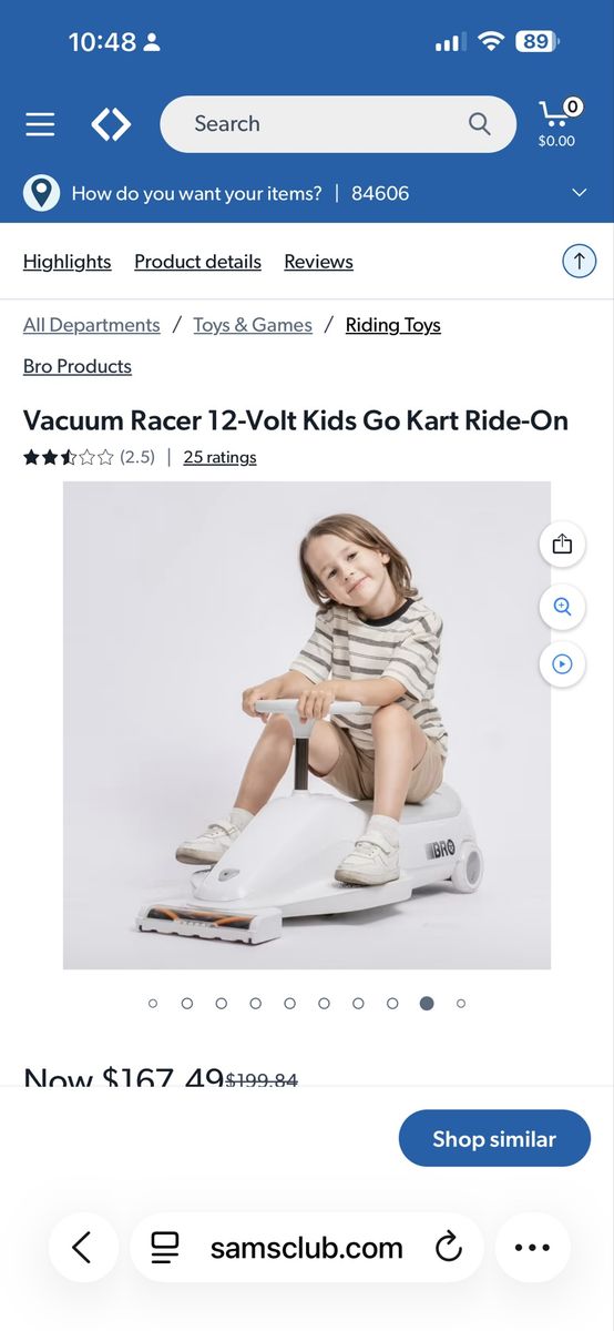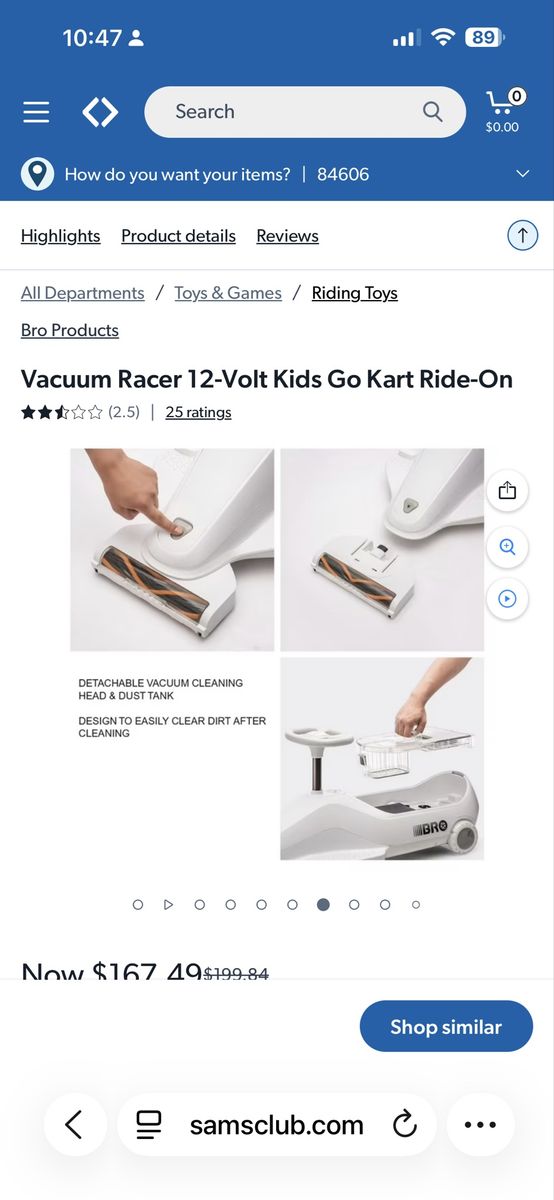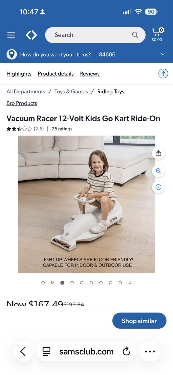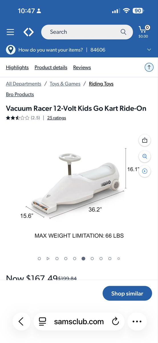 https://www.samsclub.com/ip/Vacuum-Racer-12-Volt-Kids-Go-Kart-Ride-On/17118722612