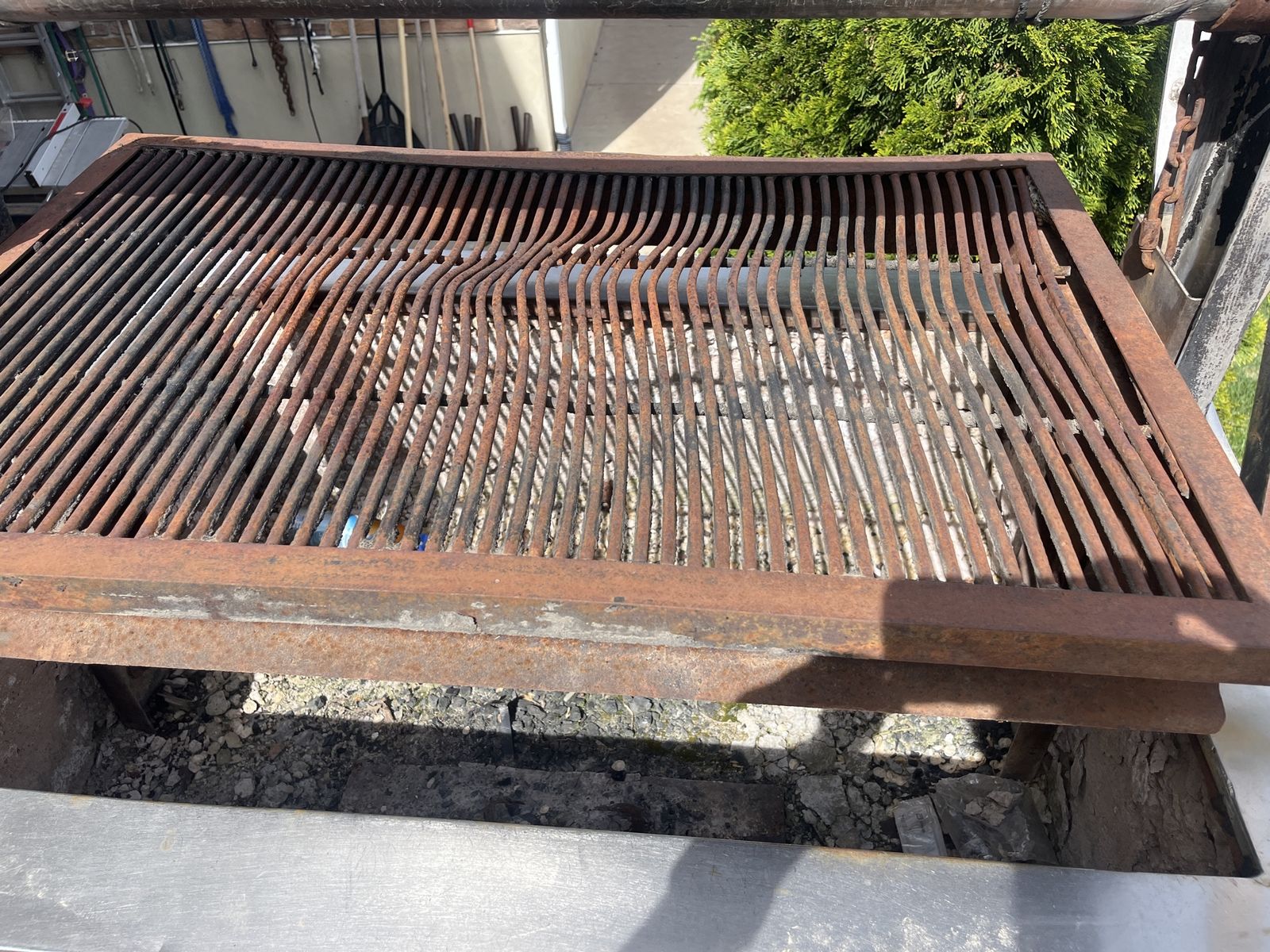 VenmoSuper heavy gas and wood-burning grill Was used in restaurant for years Has gas attachment to start but was used with Apple and Cherrywood to cook Adjustable grill height, and very, very heavy I moved it with a floor jack