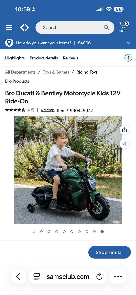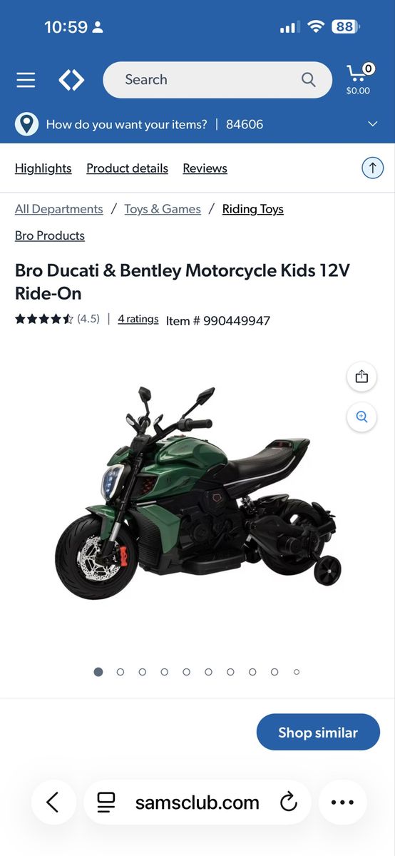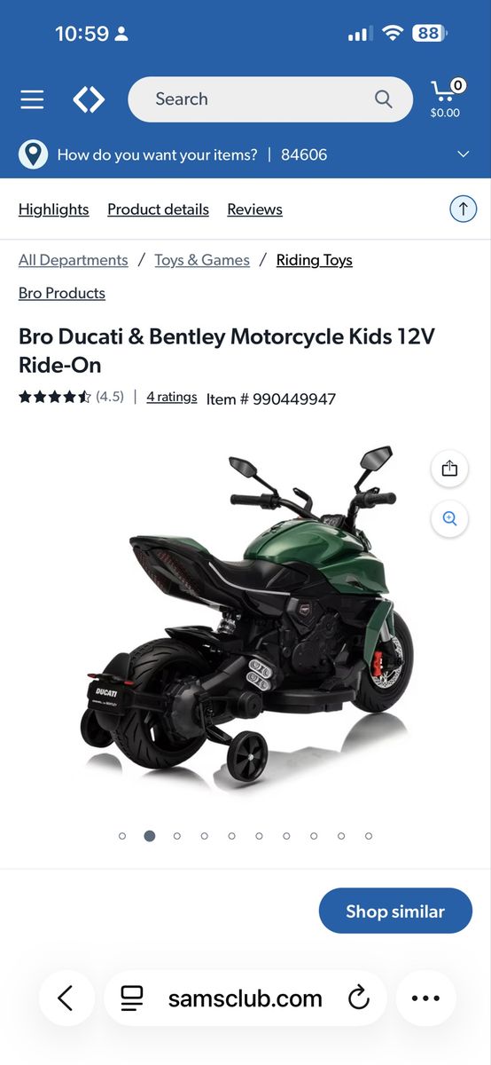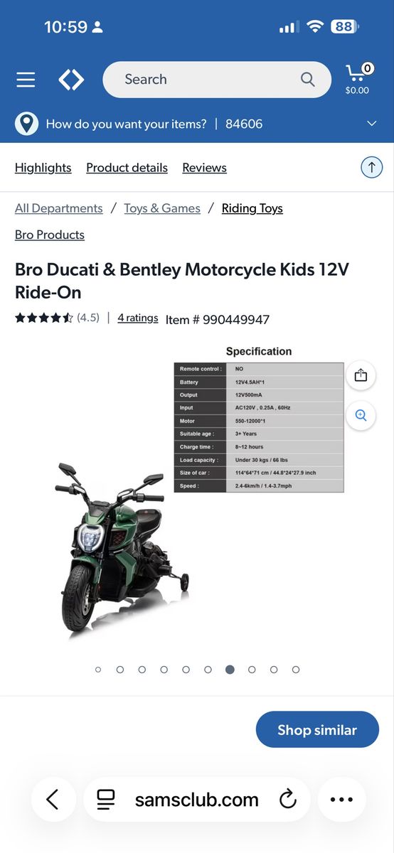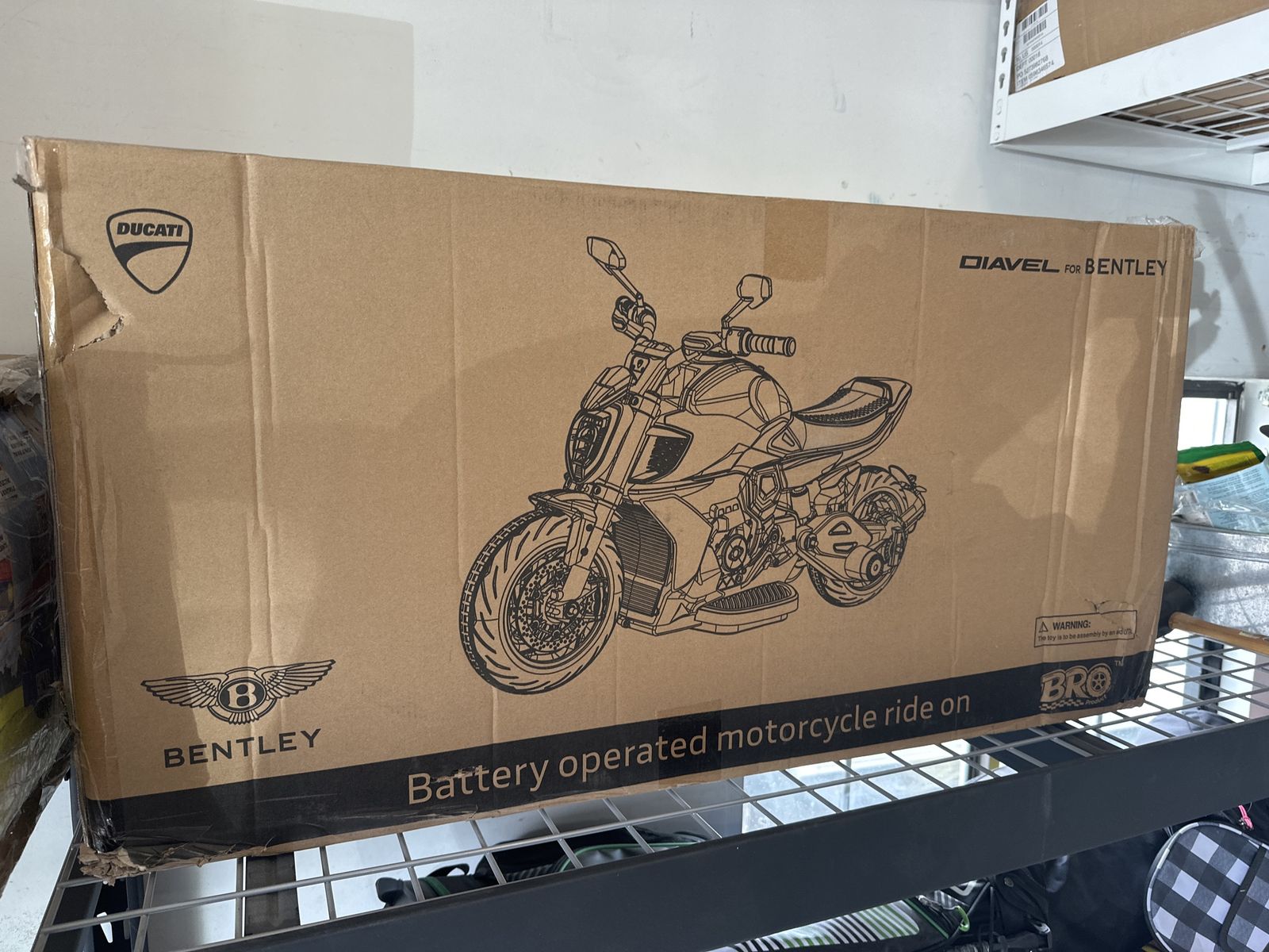 VenmoHighlights Officially licensed Ducati & Bentley design with premium, realistic styling. Working headlights, engine sounds, and horn for immersive play. Easy foot pedal operation for independent riding fun 12V 4.5Ah battery and durable 550 motor for smooth, reliable performance. Two speed modes (high/low) and reverse function for flexible control. Rear safety wheels add balance and boost riding confidence L 44.9" x W 24.0" x H 28.0" Weight: 30.1 lbs. Weight Capacity: 66 lbs.