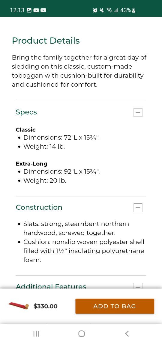 VenmoToboggan with seat pads. Brand new in box.