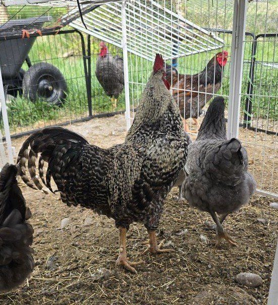 have 3 roosters 2 almost a year old other one idk age friendly and good to the hens can be good to add to flock of hens or meat if wanted not sure breeds 2 rosecombs 1 reg comb weston idaho will butcher in a week or so