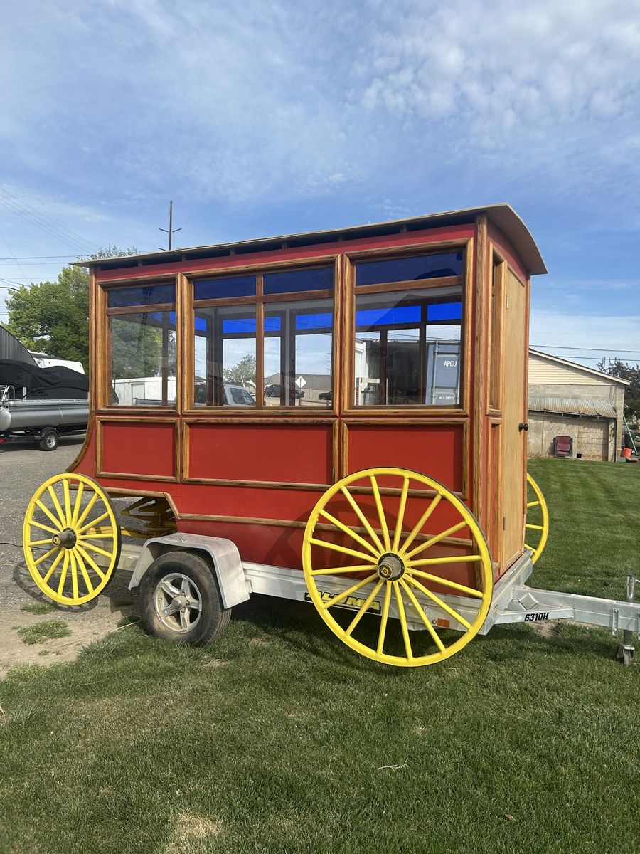 This early 1900s popcorn trailer was the original one that sat in front of lagoon for many years. It has been mostly restored to original. It is left blank so the new owner can finish according to what he wants to sale.the roof is left unfinished for fans and venting. The last picture is a similar one in use. Thanks for looking. Would consider trade for gold or silver.