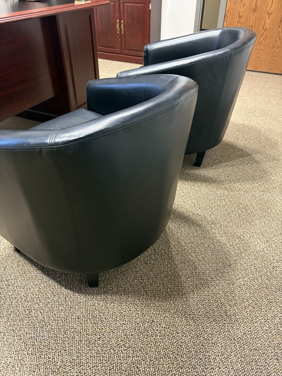VenmoBlack leather barrel chairs, great condition, hardly used, no cracks or tears. Only $60 total for both because I need to clear the space.