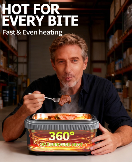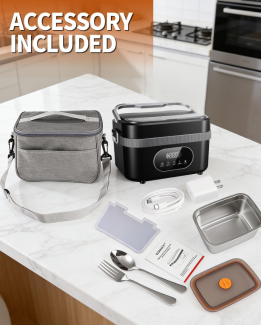 ZelleUSB RECHARGEABLE:This heated lunch box was built with a 18000mah battery with USB charge port,It can heat meals without outlet,and come with a fast charge cord, it takes only about 4 hours for full charge ,providing at least 6 hours to keep food warm and 20+ minutes to heat food,ensuring one time meal hot food, and it can be recharged by certain power bank as a supplementary for immergency use,really goes where you go. SAFE MATERIAL: This electrical lunch box was made of fire-proof PP material and Food grade SUS 304 food container, it works in mute,water-free heating,no odor,or vapour comes out.