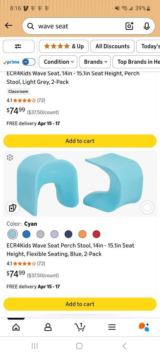 Venmo4 wave seats 10 for all of 4 that's less than 4 each. they are more than 30 each new. Seats let kids rock and have movement. great for students that struggle sitting still.