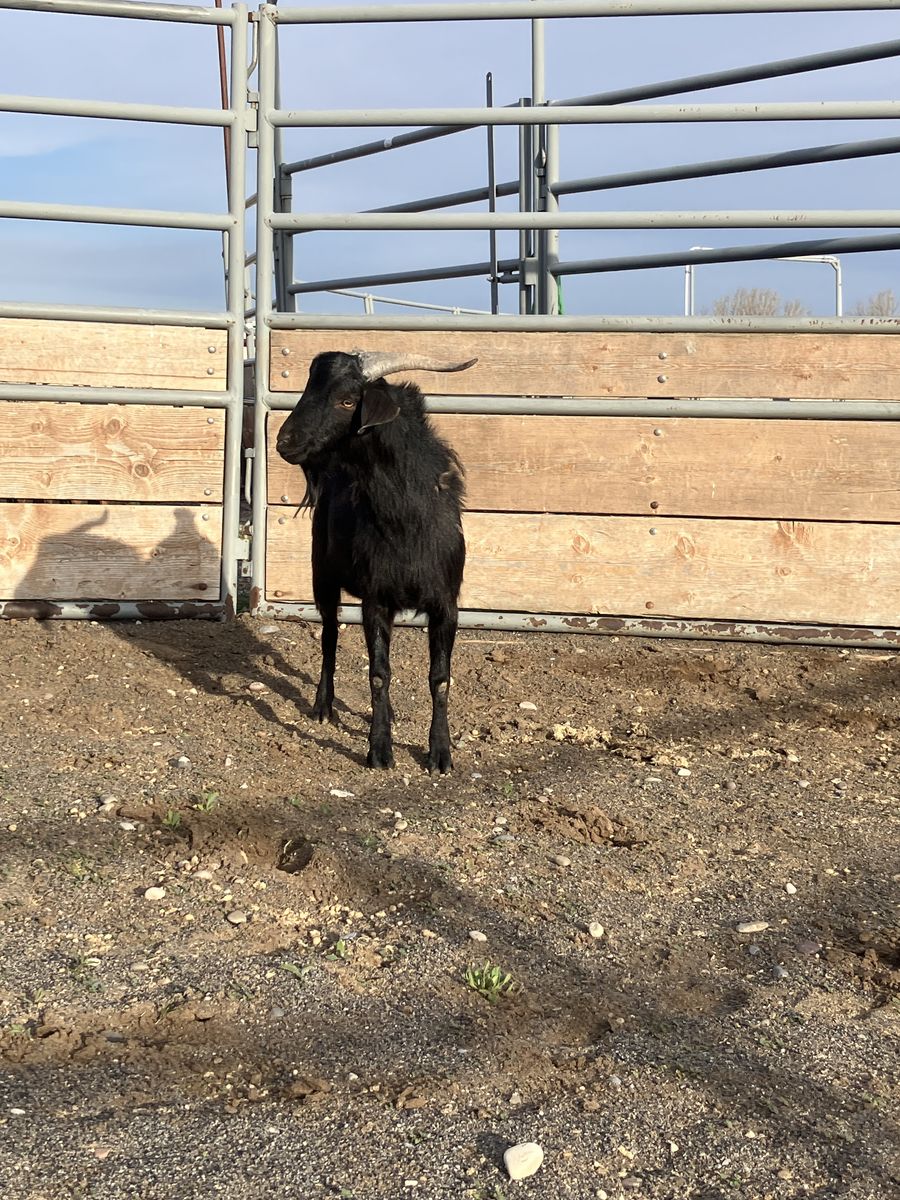 Venmo1 year old Spanish buck. Would make a great cross for a commercial herd. The Spanish line I mainly run is on the smaller side and is reflected in this guy. The line has excellent maternal instincts and pass that onto all their kids.