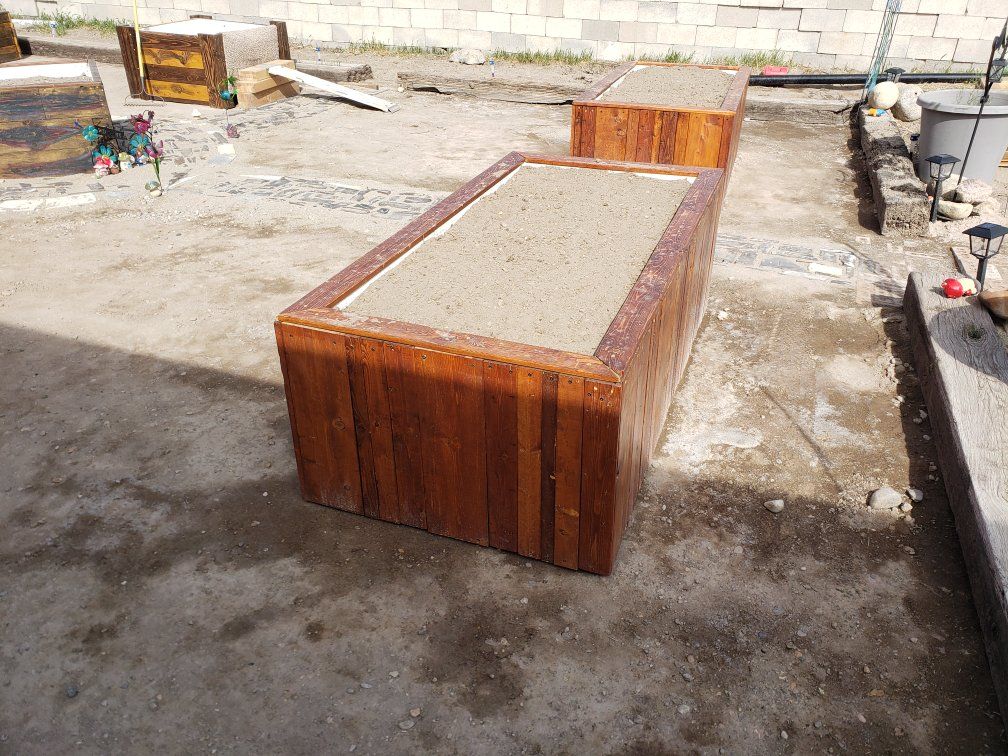 CashApp70" L x 36" W x 22 inch deep in Pine. Have Kona Brown Stain. if want different color $20 dep per color. These are constructed with heavy mesh in bottom for rodent control. 3" thick walls. Also cam seal coats tain. These are made once orders come in. Limited quantities to be made.