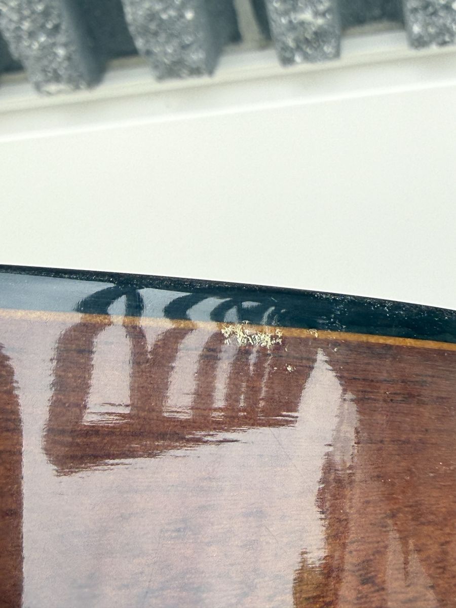 It has a small chip or dent here or there, which I have tried to show in the photos.