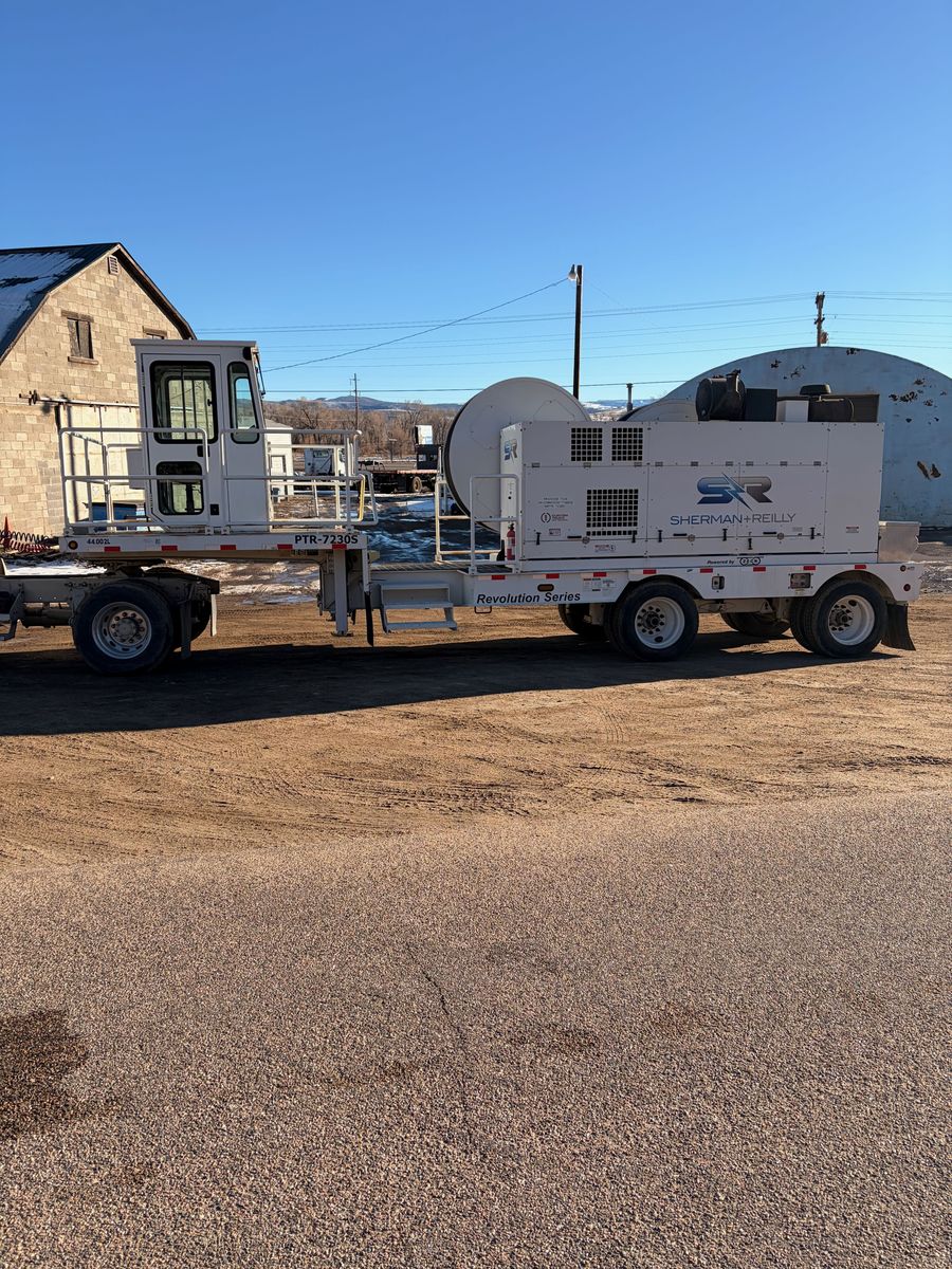 Year: 2014 Make: Sherman + Reilly Cable Puller Model: PTR-7230S Engine: Deutz TCD 268hp Diesel Engine Hours: 525 Tires: 275/70 22.5 @ 90% VIN: 123WM332XE1T30020 Detail: Tandem Axle Cable Puller and Tensioner, 102″ wide 34′ long, Engine s/n 11540731, Air Ride, 4 Hydraulic Outriggers, This Unit is in like new condition. Dlr Stk# T25001