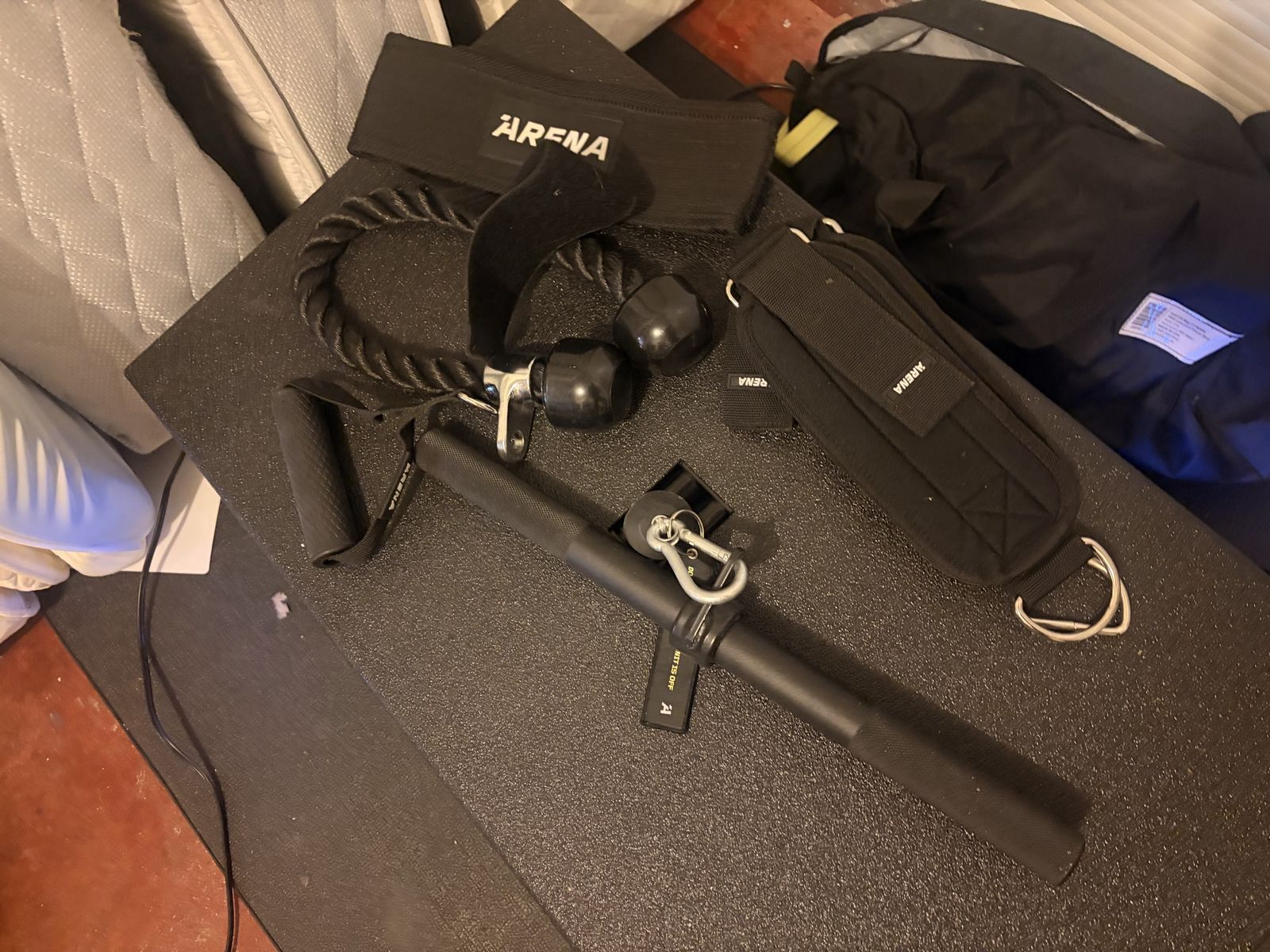 Includes everything shown: • ARENA resistance platform • Bar attachment • Rope attachment • Belt/harness • Additional straps and connectors
