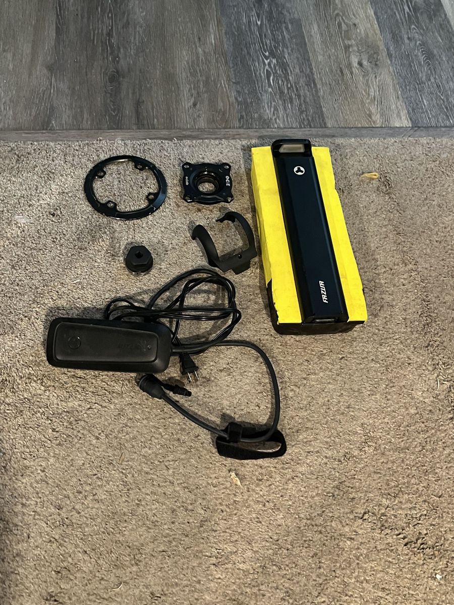 Includes an Ochain spider and bash + driver for the spider lockring, as well as the AXS battery charger, Fazua charger, and an extra motor protector (new bike came with 2 - no issues with the first one).