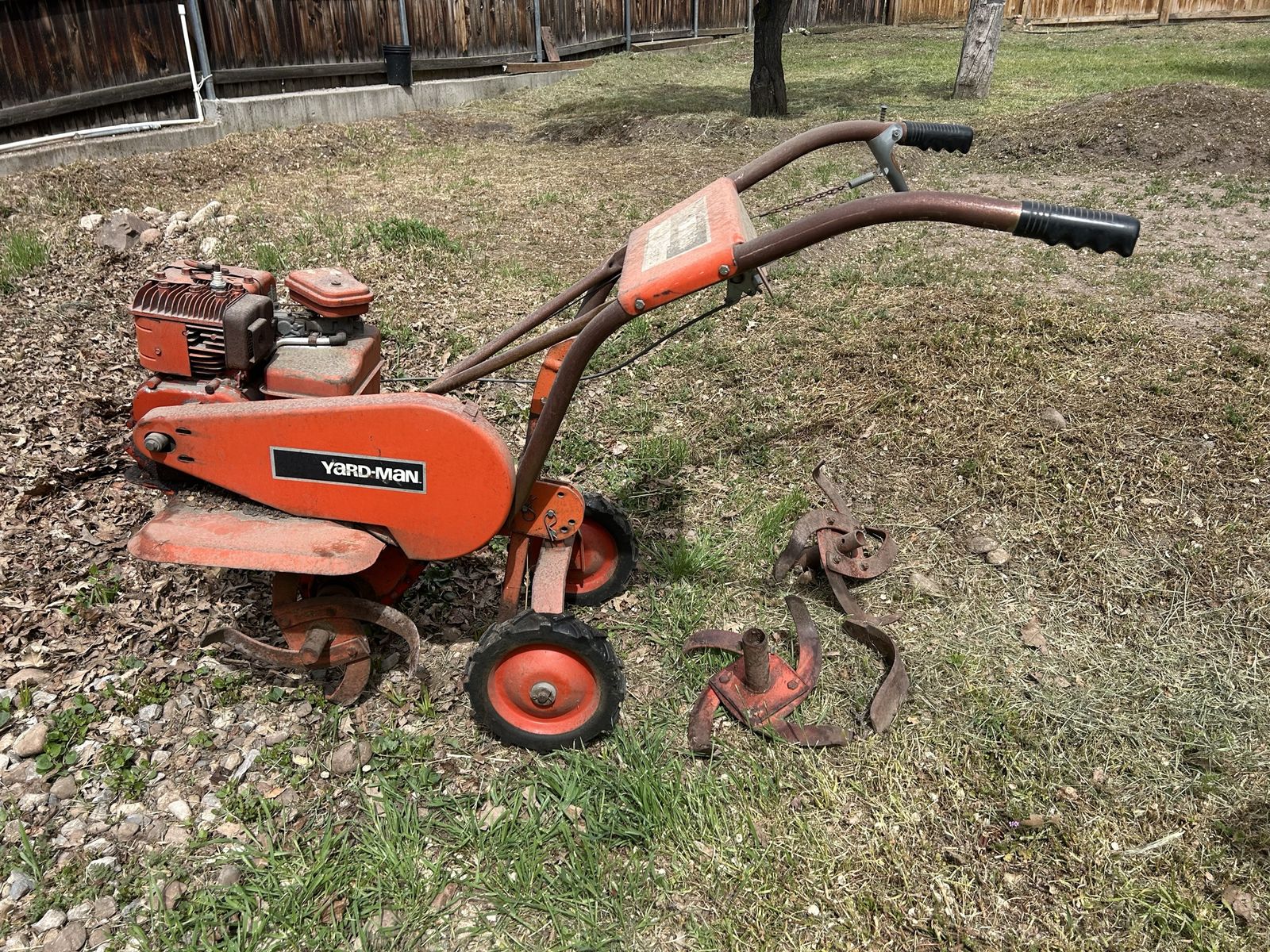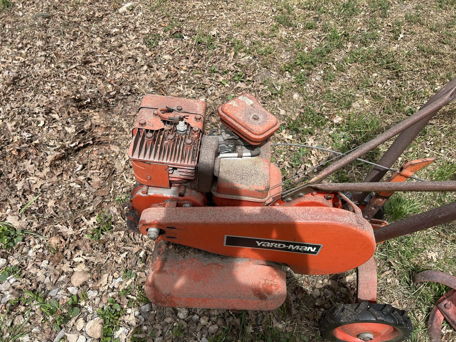 ApplePay5 hp. Yard Man Rototiller. It’s has been in a shed for the past 15 years. Doesn’t run.