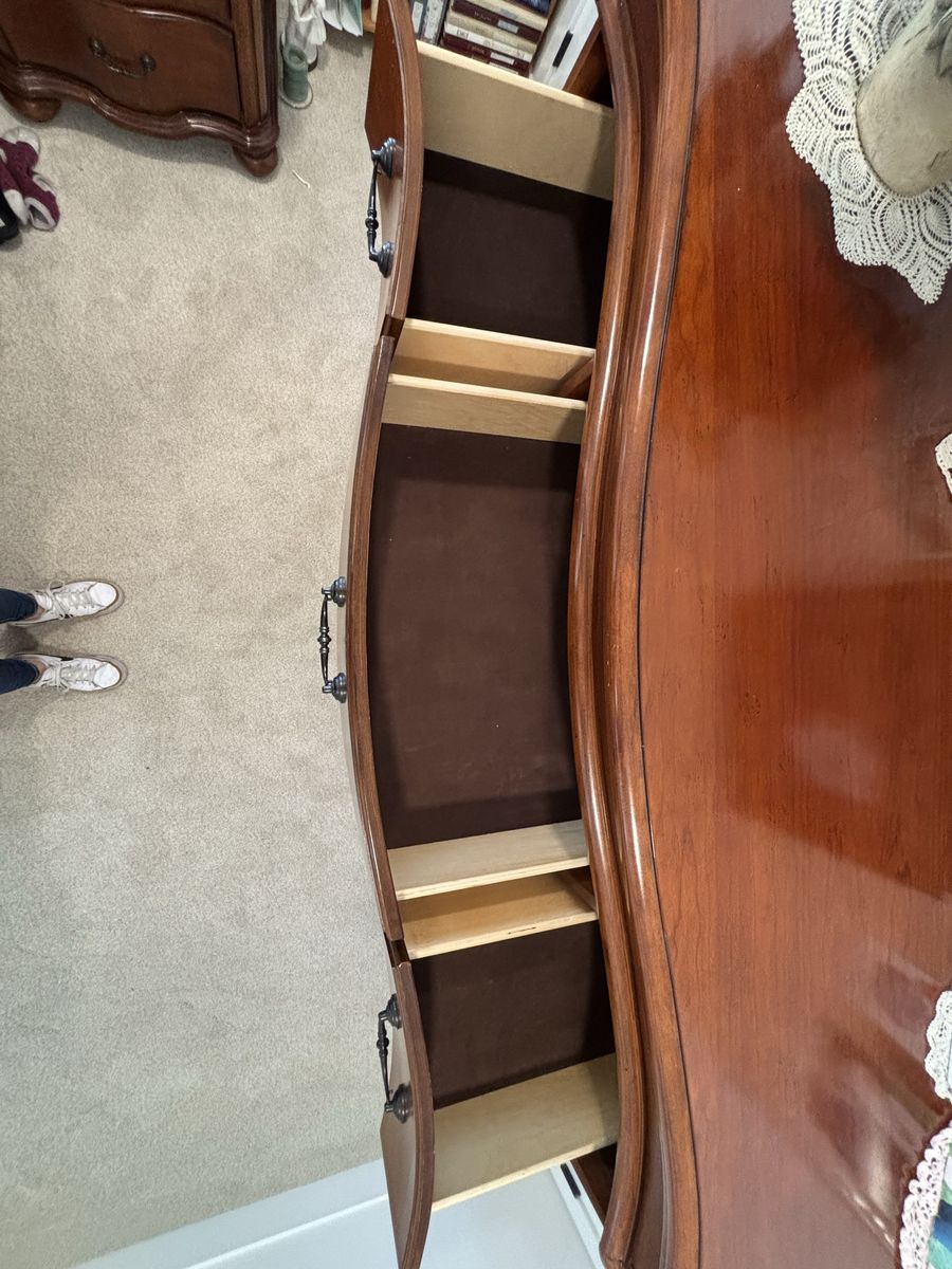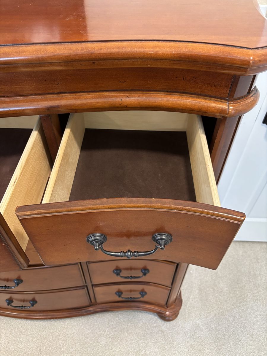 VenmoSolid wood dresser. Top three drawers are velvet lined. Matching sleigh bed also for sale. In separate listing.