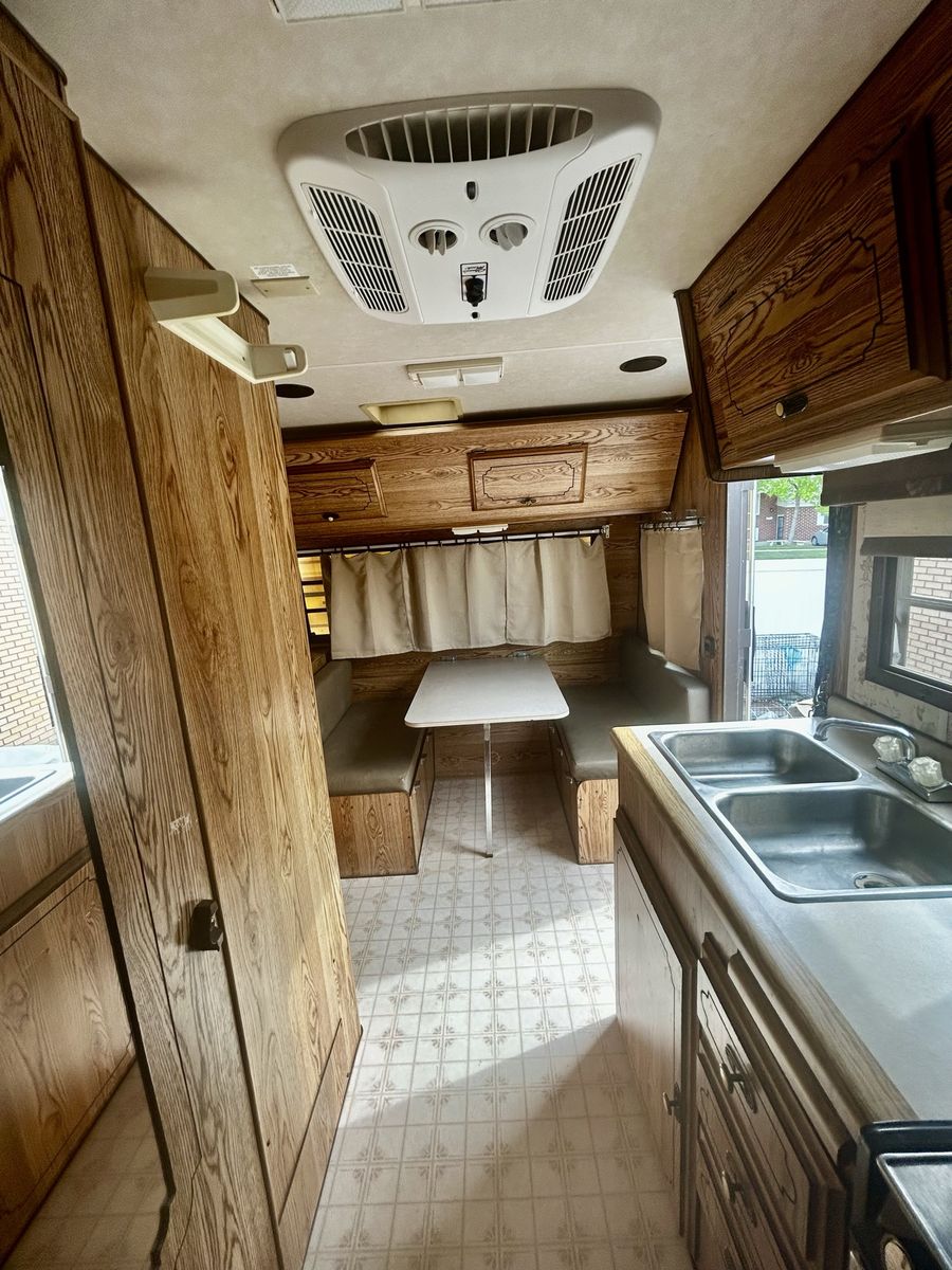 Venmo1988 Road Kit Ranger 19 ft Title in Hand Ready to take Camping. AC was installed last summer, runs ice cold. Furnace and Water Heater work Water Pump works Toilet and Shower work No leaks. We installed two batteries last summer that can last for a few days running lights, fridge (also runs off of gas), pump, etc when fully charged. It tells you battery level and how much amps is being used when using. The couch and dining table can convert to beds. There is a bunk bed / storage above both the couch and dining table. Can sleep 6, maybe even 8 if you have smaller kids to share the bunk beds. This camper has LOTS of storage. Tires still have lots of tread. Sway Bars included.