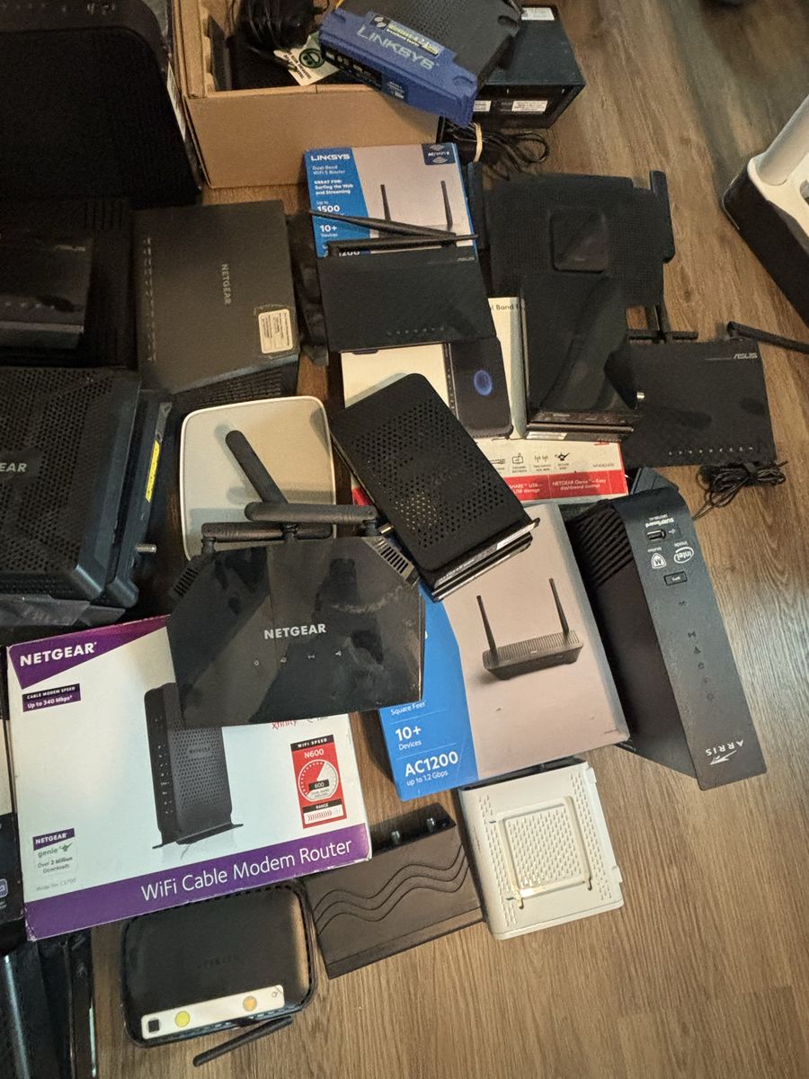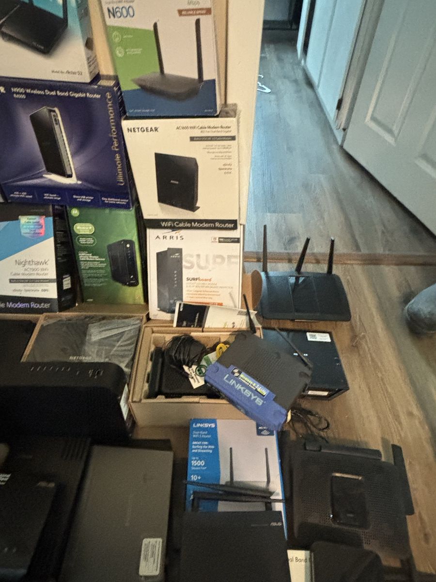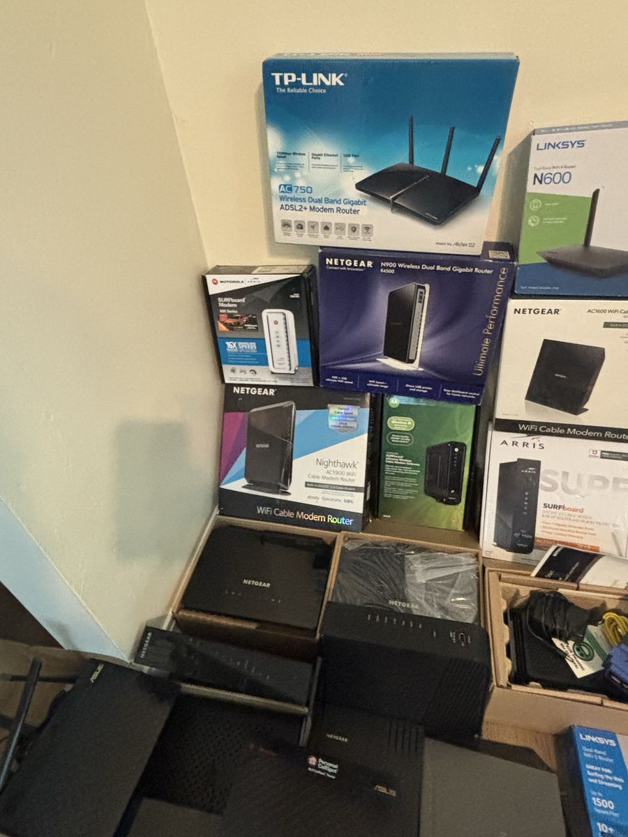 ApplePayList of routers and modem routers. They all have been tested and factory reset. Some new in box and others used but great condition. All have chargers and cables. Would like to sell all together.