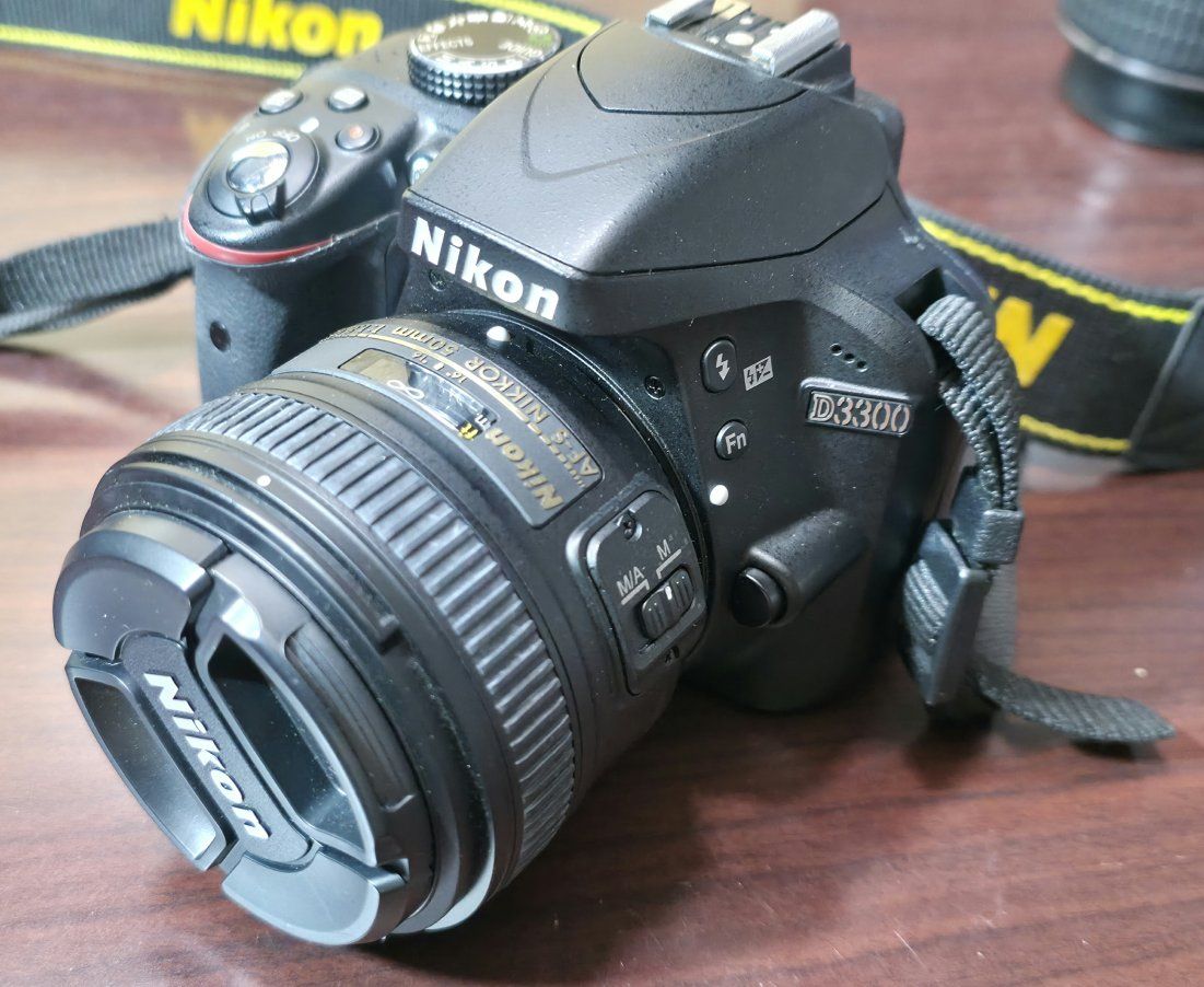 Pre-Owned Nikon D3300 24.2 MP CMOS Digital SLR with Auto Focus-S DX Nikkor 18-55mm f/3.5-5.6G VR Zoom Lens (Black) and Auto Focus-S Nikkor 50mm 1:1.8 G Zoom Lens, 1 battery, Charger and memory card, and Shutter Count is 10,761, this camera is designed for 200,000, means this is used 10-12% only.