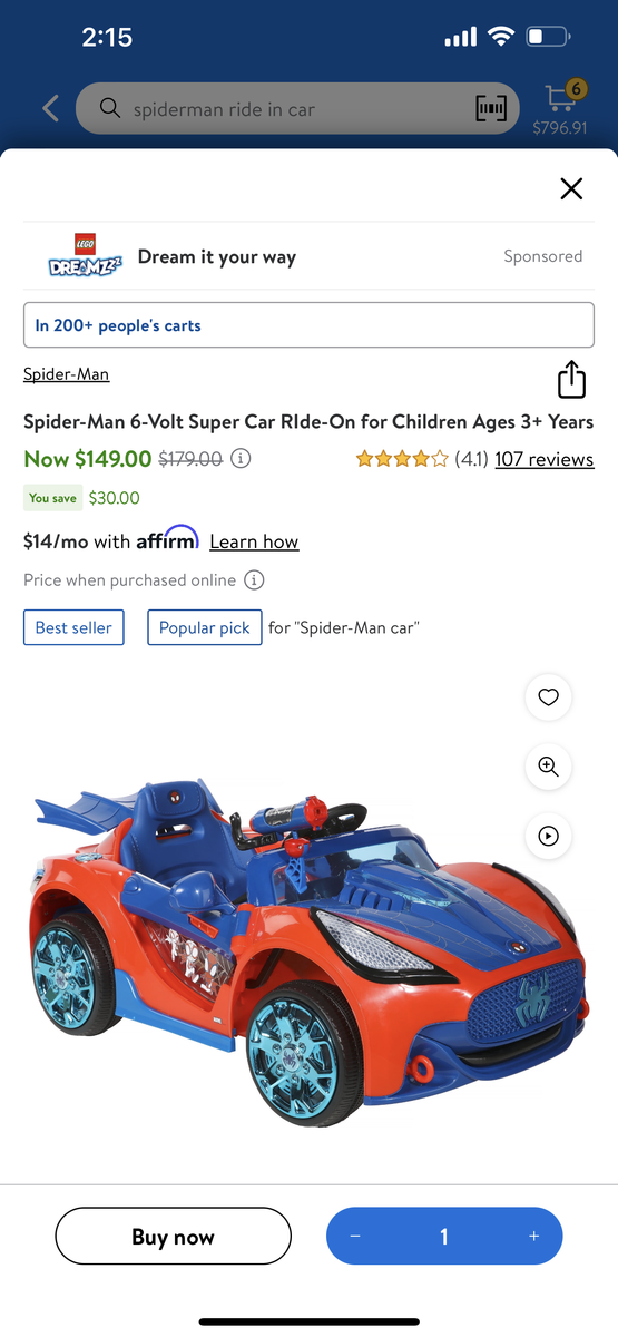 Brand new kids ride-in electric car. Bright blue and red design with sporty detailing. Never used — still in original packaging with protective plastic on parts.